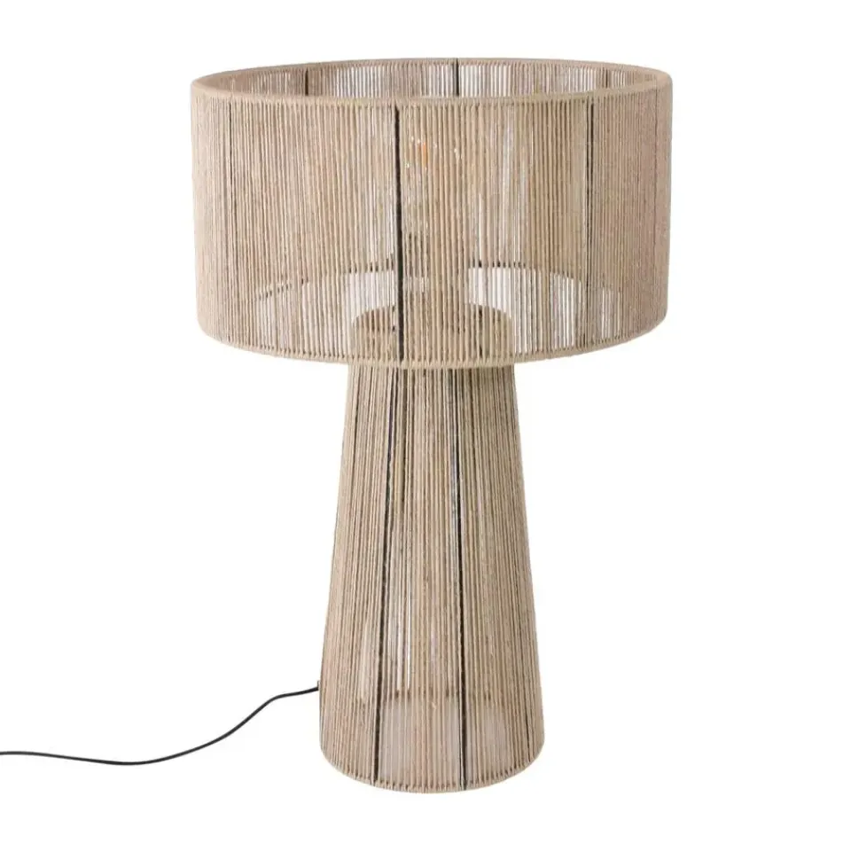 Hou jij van een neutrale, warme stijl? De Urban Interiors Diro tafellamp is gemaakt van jute. Door zijn jute materiaal geeft deze lamp een warme en gezellige sfeer in de kamer. De lamp heeft een halfopen structuur waardoor licht zich mooi verspreid.