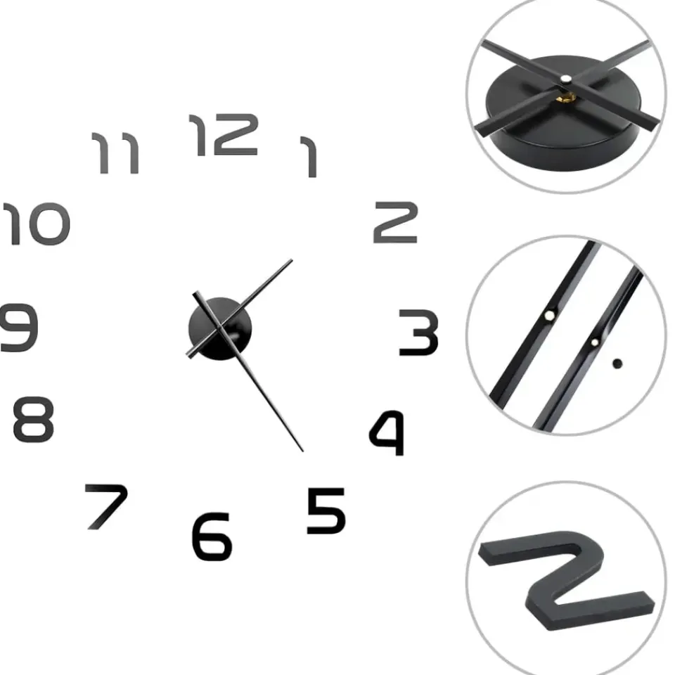 De klok is voorzien van een 3D-effect dat het middelpunt van je interieur wordt. Hij is ook een doe-het-zelf-item, wat betekent dat je de grootte van de klok zelf kan bepalen op basis van jouw behoeften en voorkeur. De stickers hebben een glanzend uiterlijk die bijdragen aan het aantrekkelijke ontwerp van de klok. De klok geeft je interieur een nette en opgeruimde uitstraling. De installatie is eenvoudig.