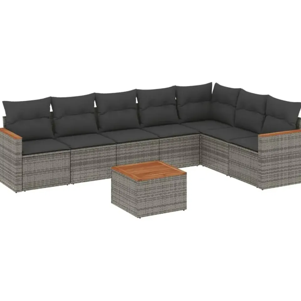 vidaXL 8-delige Loungeset kussens - hout armsteun & salontafel - Grijs Best