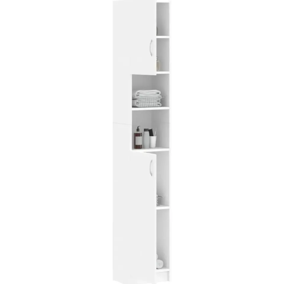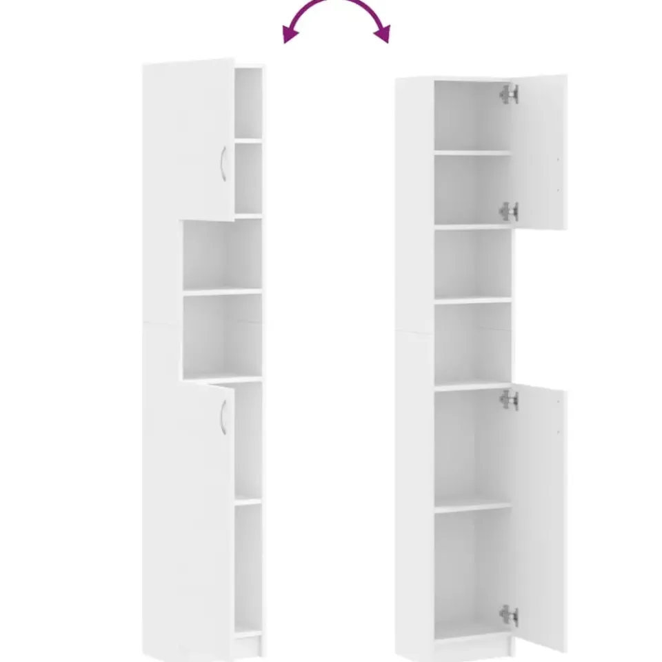 Onze chique badkamerkast is gemaakt van hoogwaardig bewerkt hout waardoor hij stevig en stabiel is. De hoge kast heeft 4 schappen met deuren en 2 open schappen en biedt verschillende opbergmogelijkheden en genoeg opbergruimte om spullen in je badkamer op te bergen. De kast is eenvoudig schoon te maken met een vochtige doek. Deze opbergkast is eenvoudig te monteren met de inbegrepen montagematerialen.