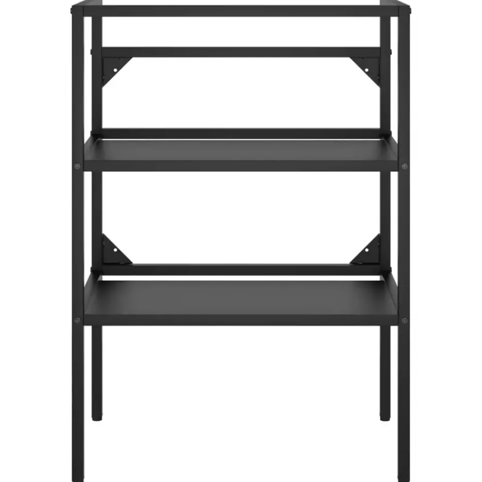 De wastafelstandaard is gemaakt van gepoedercoat ijzer en is weerbestendig en duurzaam. Het frame biedt gemakkelijke toegang tot handdoeken en manden en creëert meer ruimte dan gesloten opbergers. Het badkamerframe is gemakkelijk schoon te maken met een vochtige doek.