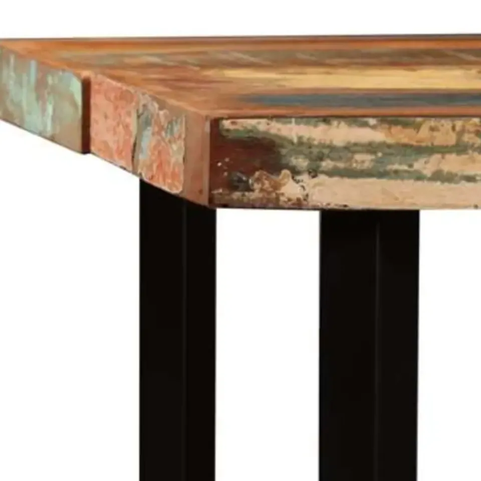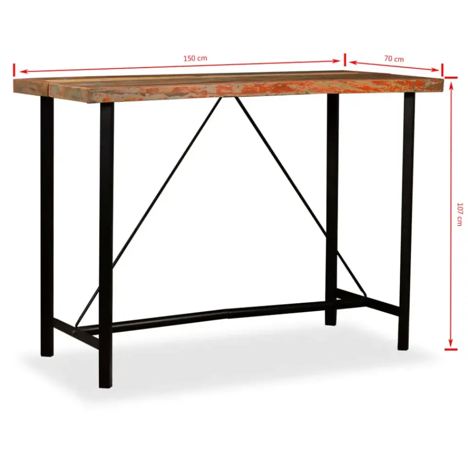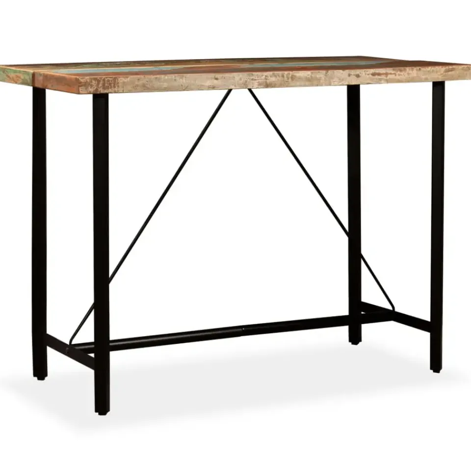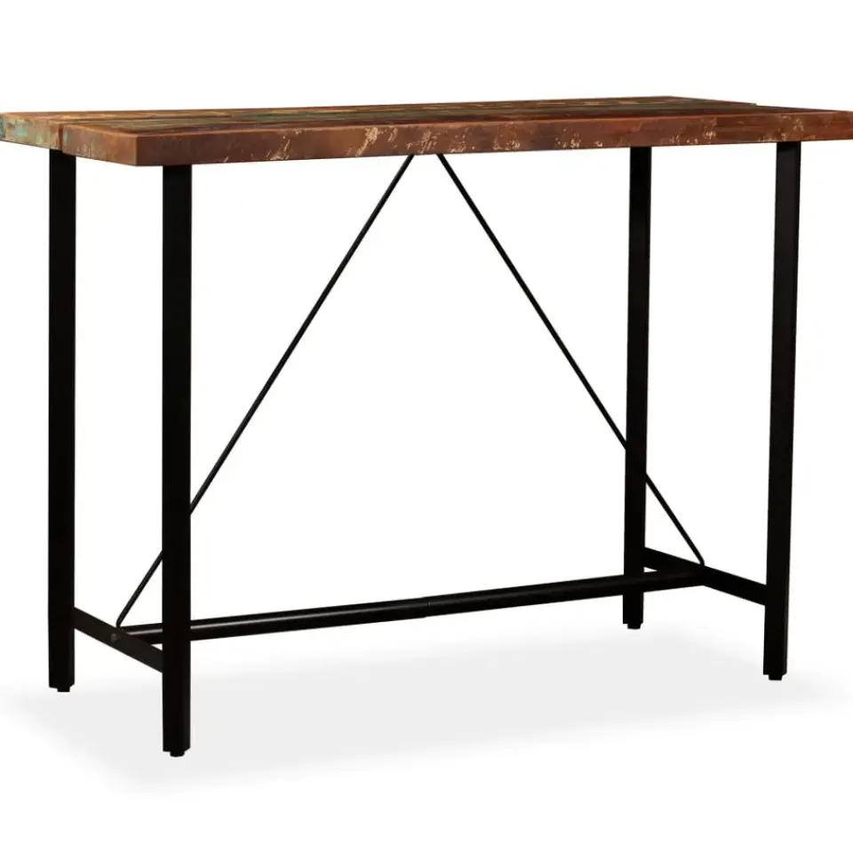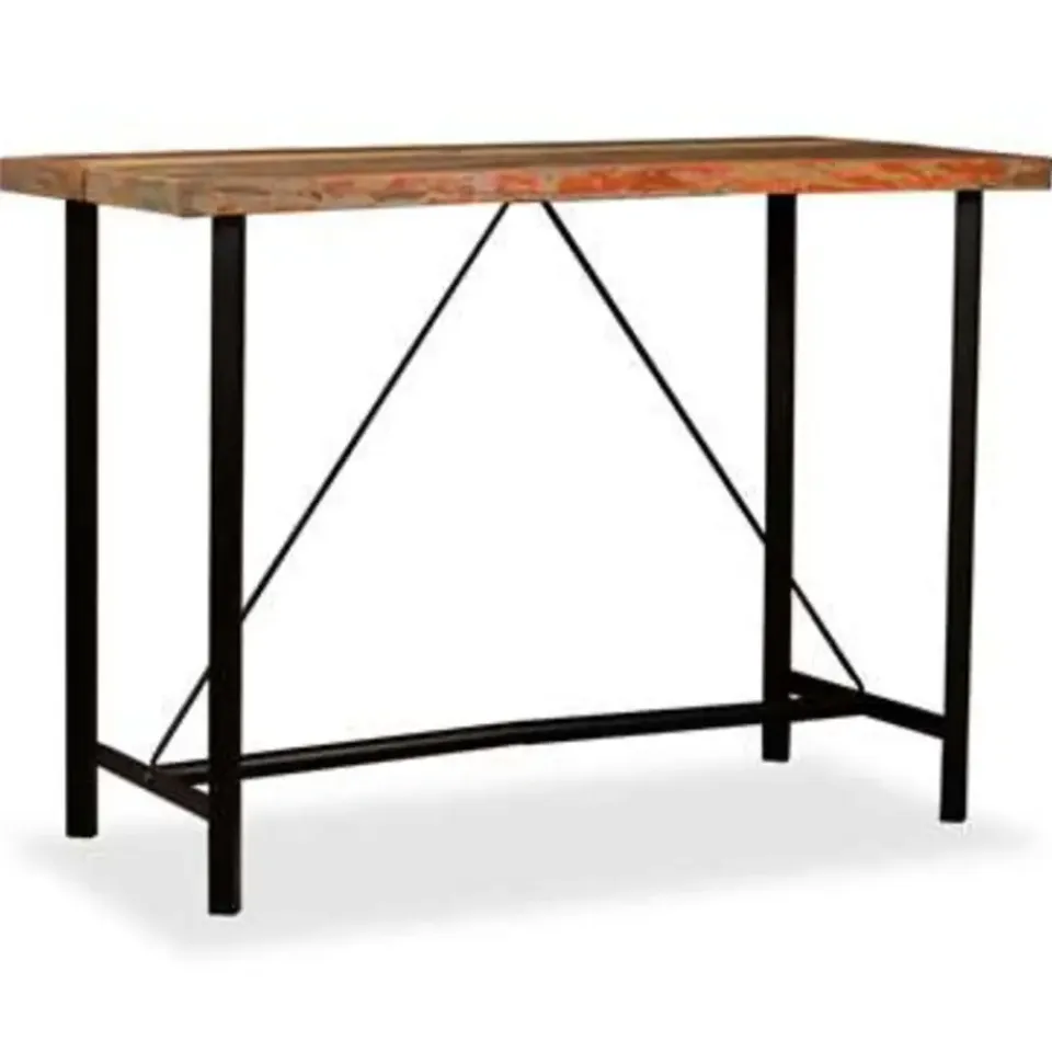 De bartafel is vervaardigd van massief gerecycled hout, wat wil zeggen dat hij de eigenschappen van verschillende houtsoorten heeft zoals teakhout, mangohout en acaciahout. Gerecycled hout is sterk, stevig, duurzaam en mooi. De tekenen van slijtage geven aan ieder stuk een unieke uitstraling en de stalen frames verhogen de spectaculaire industriële stijl. Iedere stap in het constructieproces wordt met de grootste zorg uitgevoerd, of het nu samenvoegen, polijsten, verven of lakken is. Montage is eenvoudig.