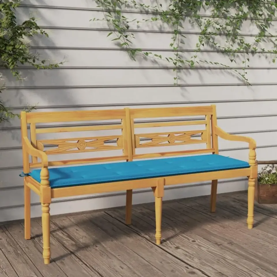 Voeg een vleugje elegantie toe aan je buitenruimte met deze houten Batavia bank met een kussen!