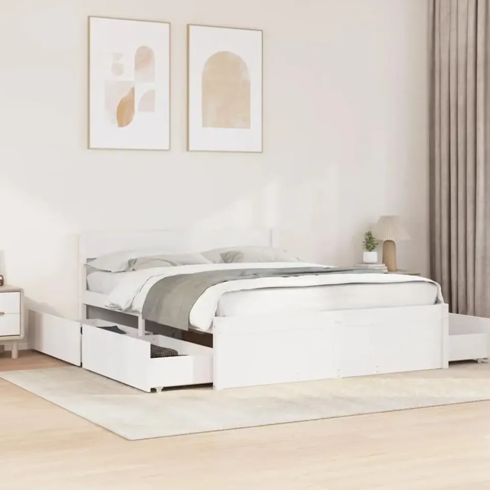 vidaXL – Bed met hoofdbord en lades – Wit – Massief grenenhout – 140×200 cm Hot