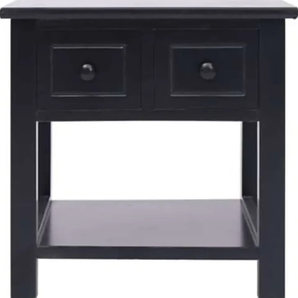 Deze salontafel is gemaakt van paulowniahout en MDF en is duurzaam en stevig. De tafel biedt veel opbergruimte dankzij de 2 lades en het onderste schap. Het stevige tafelblad is ideaal voor het weergeven van decoratieve objecten, fotolijsten en potplanten. Hij is gemakkelijk schoon te maken met een vochtige doek. De bijzettafel is eenvoudig te monteren.