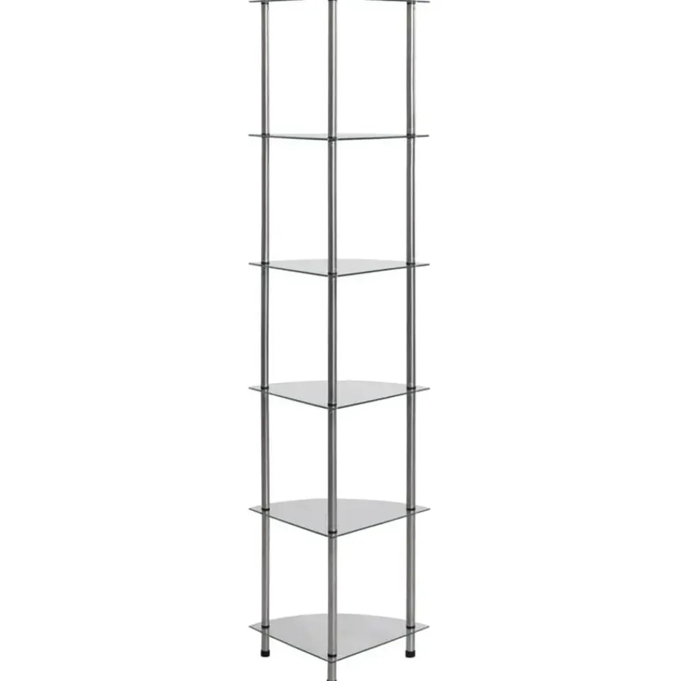 De vitrinekast is ontworpen met zes lagen voor voldoende opbergruimte. Je kunt het multifunctionele kastje in de woonkamer of op kantoor gebruiken om je verzamelobjecten, fotolijsten, potplanten te tonen, of in de badkamer om je benodigdheden georganiseerd te houden. Het is gemaakt van dik, gehard glas en roestvrij staal. Dit meubel is buitengewoon stevig en veilig. Bovendien is het gladde oppervlak eenvoudig te reinigen met een vochtige doek.