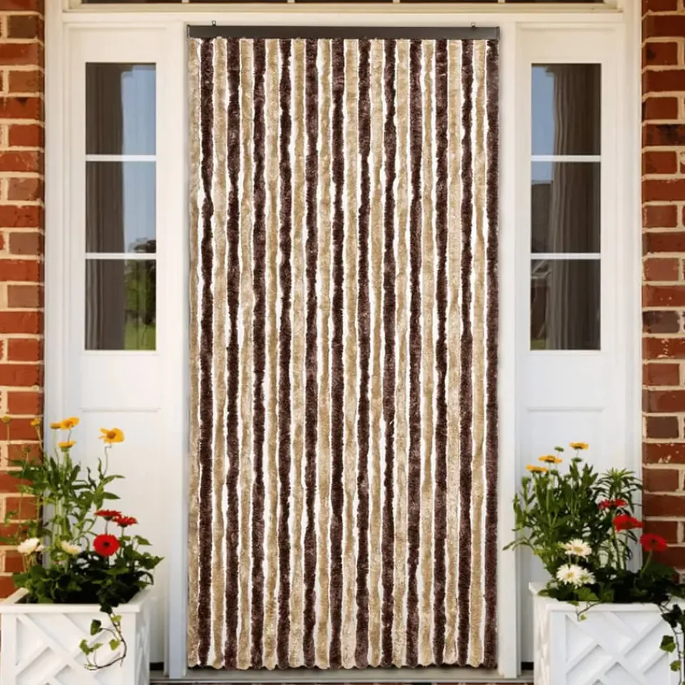 De strengen zijn gemaakt van polypropyleen chenille, wat ervoor zorgt dat het gordijn stil en veilig werkt en je er gemakkelijk doorheen kunt lopen.