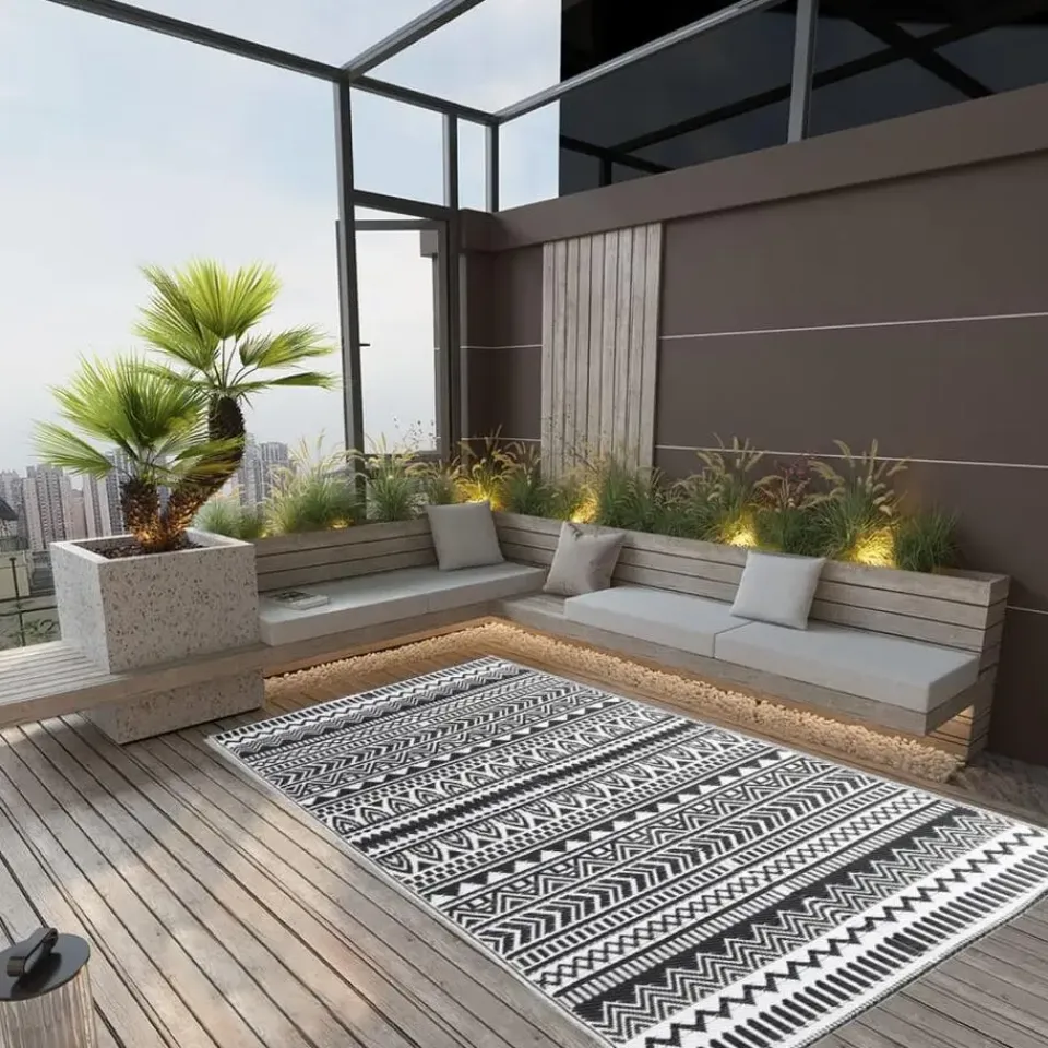 Het kleed is gemaakt van PP-materiaal, waardoor het zacht is en zelfs gebruikt kan worden om je zwembad gezelliger te maken! Bovendien heeft het een dubbellaags jacquard-patroon, waardoor het tuinkleed uniek en stijlvol is.