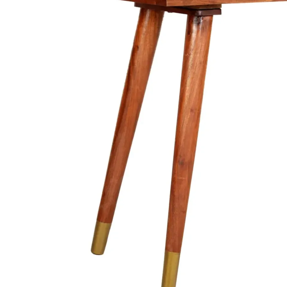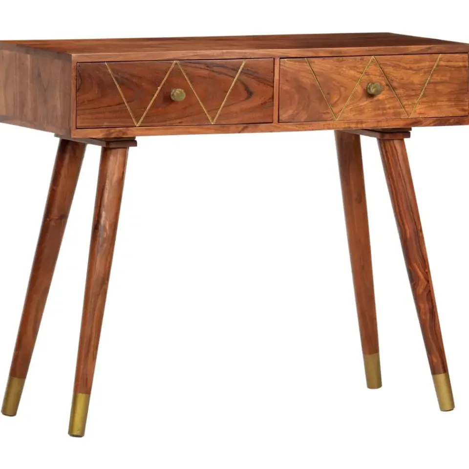 De tafel heeft een verfijnde uitstraling en is gemaakt van massief acaciahout dat een mooie afwerking heeft gekregen door polijsten, schilderen en lakken. De tafel is volledig handgemaakt en de prachtige houtnerven maken elk meubel uniek en net iets anders dan de rest. Het stevige tafelblad is ideaal voor het plaatsen van decoratieve objecten, fotolijsten en potplanten. Twee soepel lopende lades kunnen worden gebruikt om kleine spullen, zoals sleutels, notitieblokken en pennen, in op te bergen. Hij kan ook worden gebruikt als een bureau, bijzettafel, bijzetkast, enz. De tafel is gemakkelijk schoon te maken met een vochtige doek.