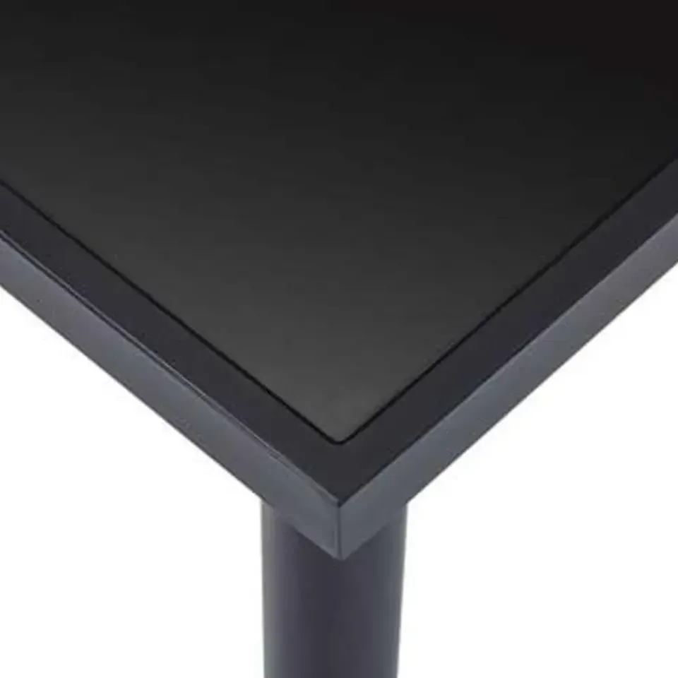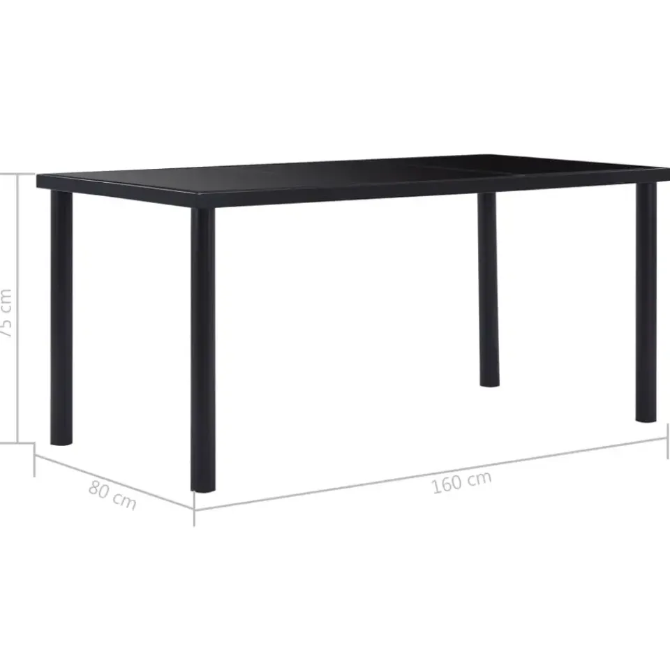 De eettafel heeft een glad, gehard glazen tafelblad dat gemakkelijk te reinigen is met een vochtige doek. Het gepoedercoat metalen frame draagt bij aan de massieve constructie en zorgt voor hoge stabiliteit en duurzaamheid. De tafel is eenvoudig te monteren.