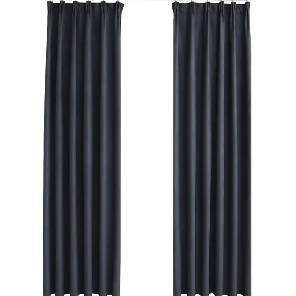 Het gordijn heeft een simpel, tijdloos ontwerp. Dankzij de metalen haken kunnen de gordijnen eenvoudig aan gordijnrails opgehangen worden. De gordijnen hebben een suède-touch en zijn gemaakt van premium polyester. Ze kunnen in de wasmachine worden gewassen.