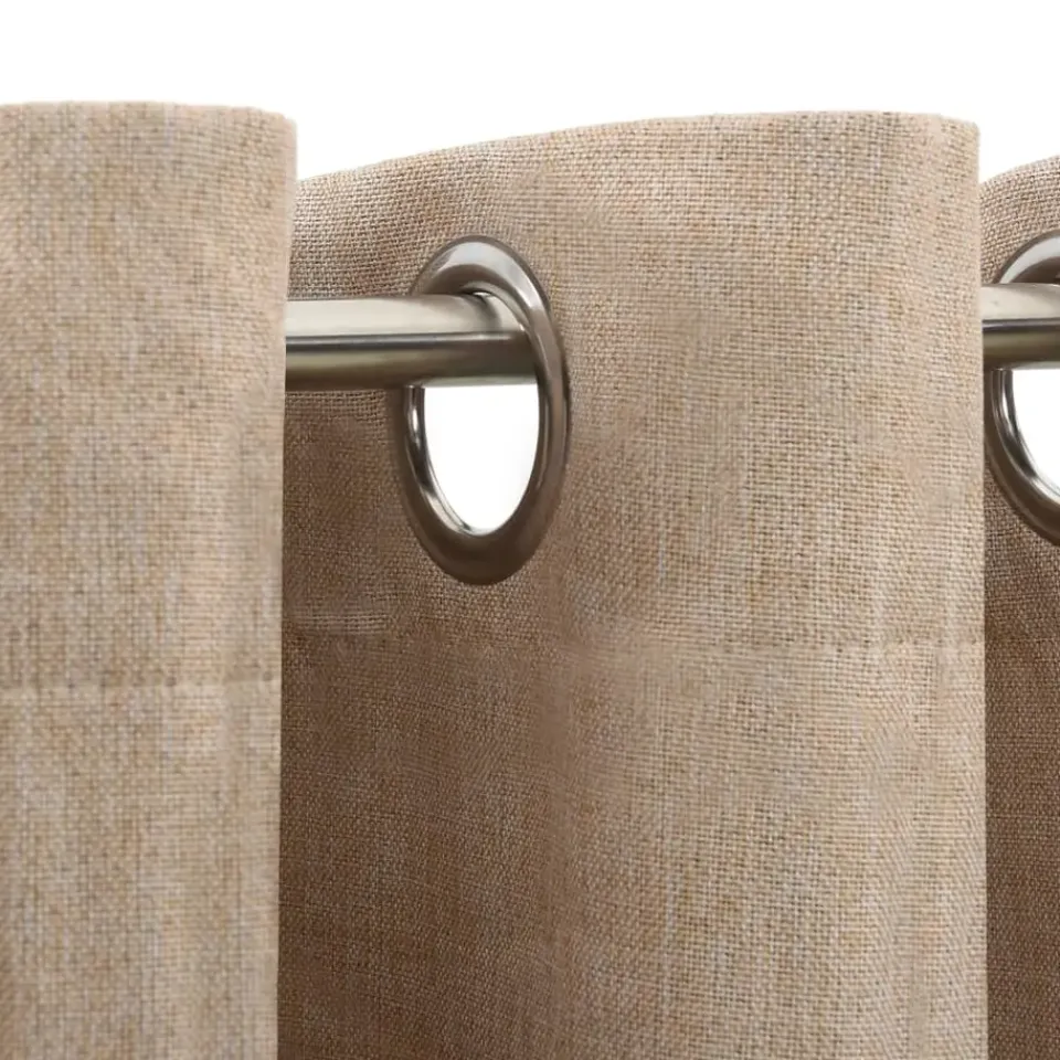 Dankzij de ogen kunnen de gordijnen gemakkelijk aan de gordijnroede worden gehangen. De gordijnen, gemaakt van hoogwaardig 100% polyester met linnen-look, zijn in de wasmachine wasbaar. Let op, de gordijnroede is niet inbegrepen.