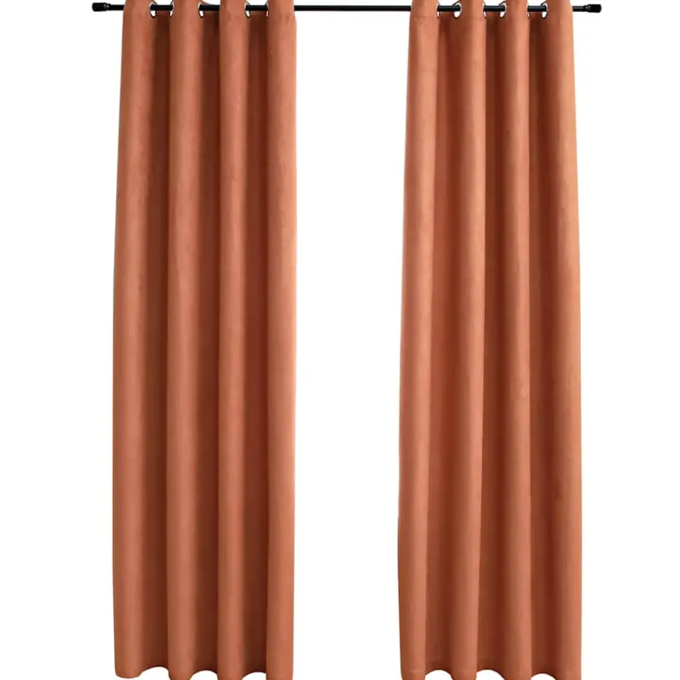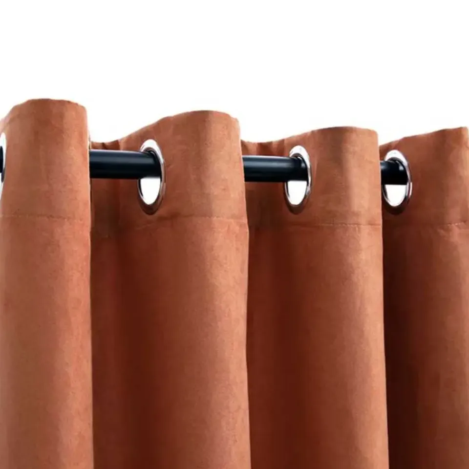 Het gordijn heeft een simpel, tijdloos ontwerp. Dankzij de metalen ringen kunnen de gordijnen eenvoudig aan elk type gordijnroede opgehangen worden. De gordijnen hebben een suède-touch en zijn gemaakt van premium polyester. Ze kunnen in de wasmachine worden gewassen.