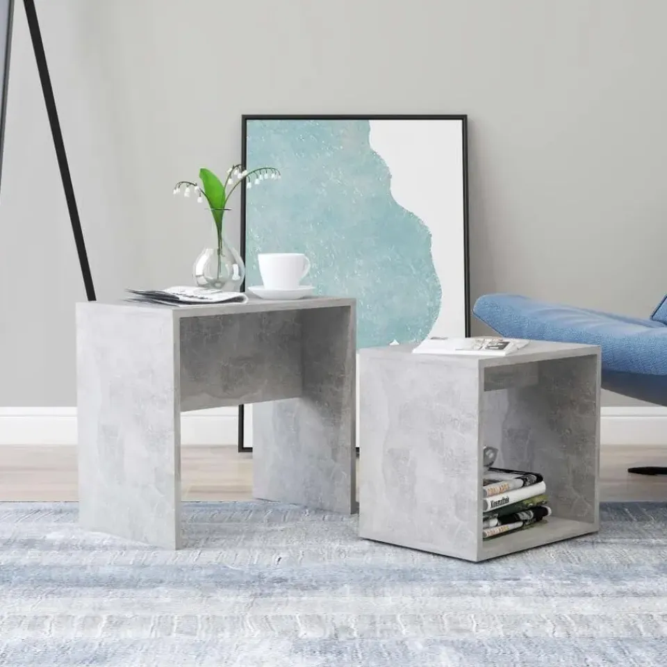 Onze 2-delige tafeltjesset is de perfecte oplossing voor kleine flats of andere plekken waar ruimte beperkt is. Het eigentijdse ontwerp maakt deze set een chique aanvulling op je woonkamer, slaapkamer of kantoor.