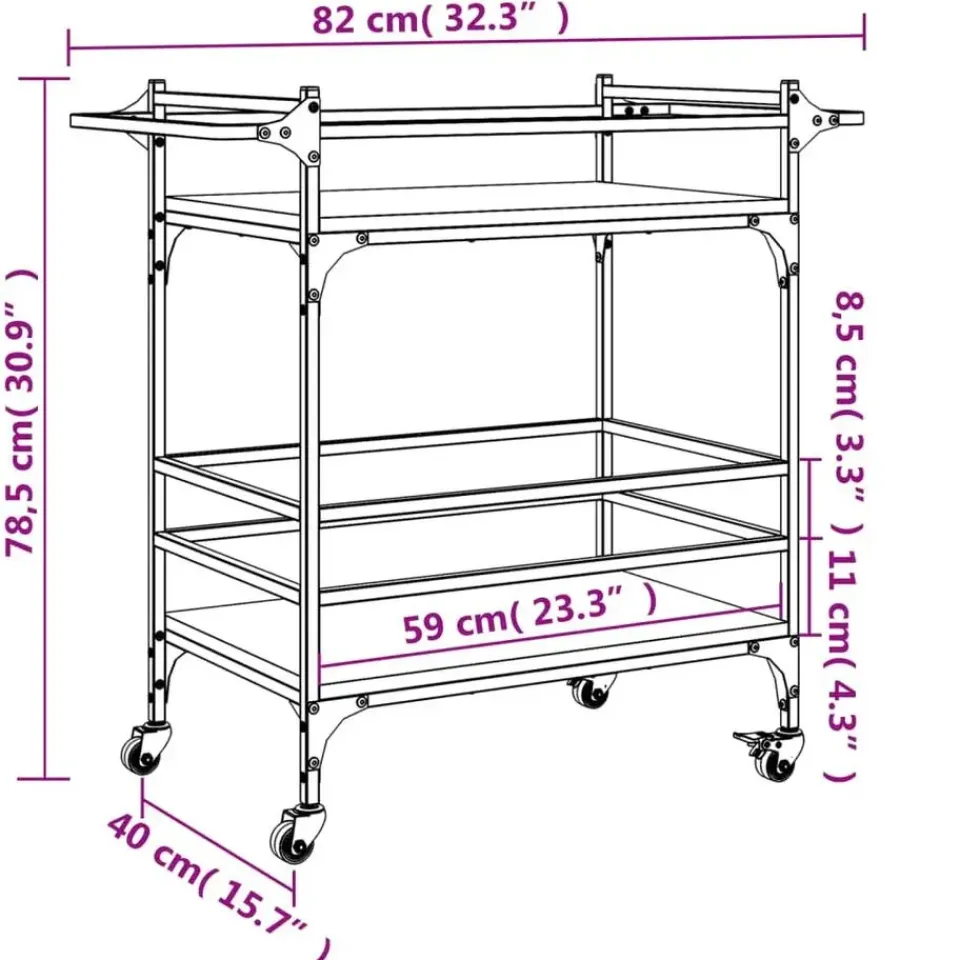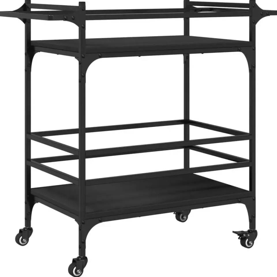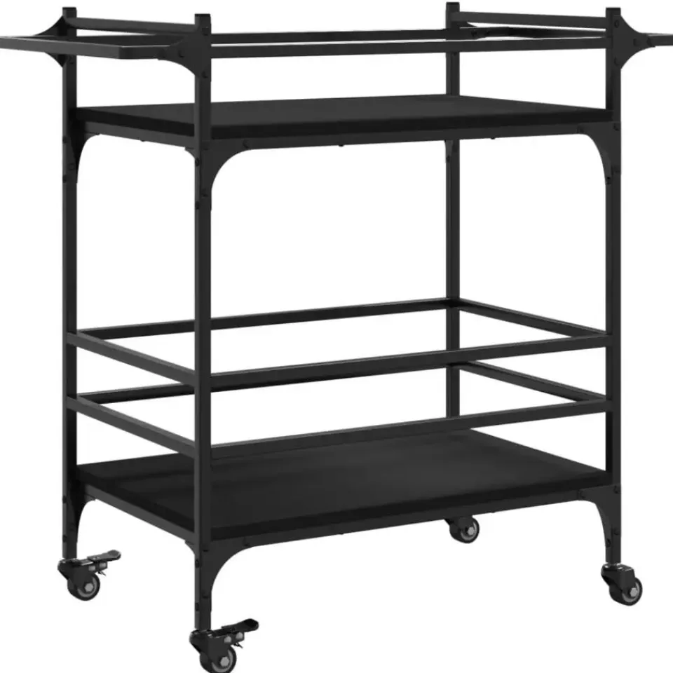 vidaXL – Keukentrolley – Zwart – Bewerkt hout