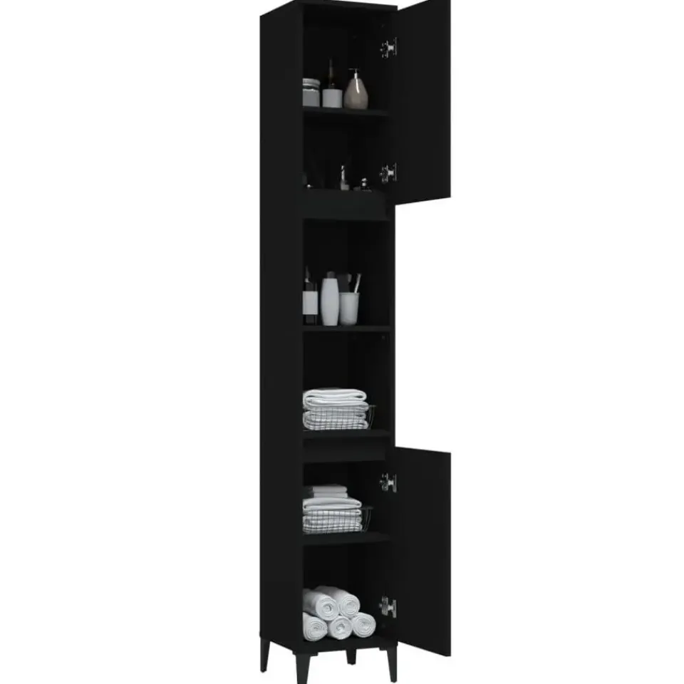 - Metalen poten: de metalen poten bieden de badkamerkast stevigheid en stabiliteit.