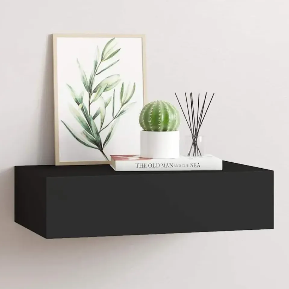 Deze zwevende plank is gemaakt van MDF en metaal en gaat lang mee. De wandplank met lade biedt ruimte voor kleine spullen zoals sieraden, horloges, portemonnees, sleutels, enz. Hij voegt design en stijl toe aan verschillende woonkamers en geeft ze een lichte uitstraling.