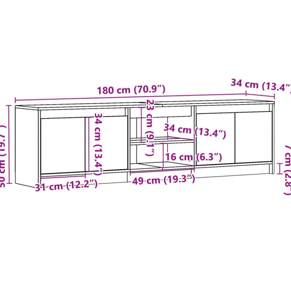 - Afmetingen: 180 x 34 x 50 cm (B x D x H)