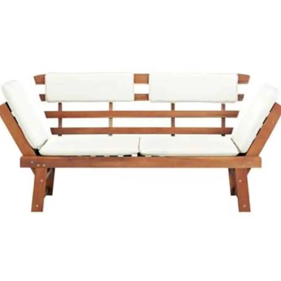 Dit houten zonnebed/tuinbank combineert stijl en functionaliteit en is de blikvanger van je tuin of terras.