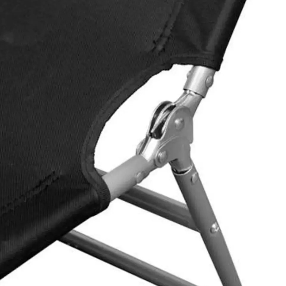Het gepoedercoate staal maakt het ligbed extreem stabiel en duurzaam. Het kan makkelijk ingeklapt worden na gebruik zodat hij niet te veel opslagruimte inneemt.