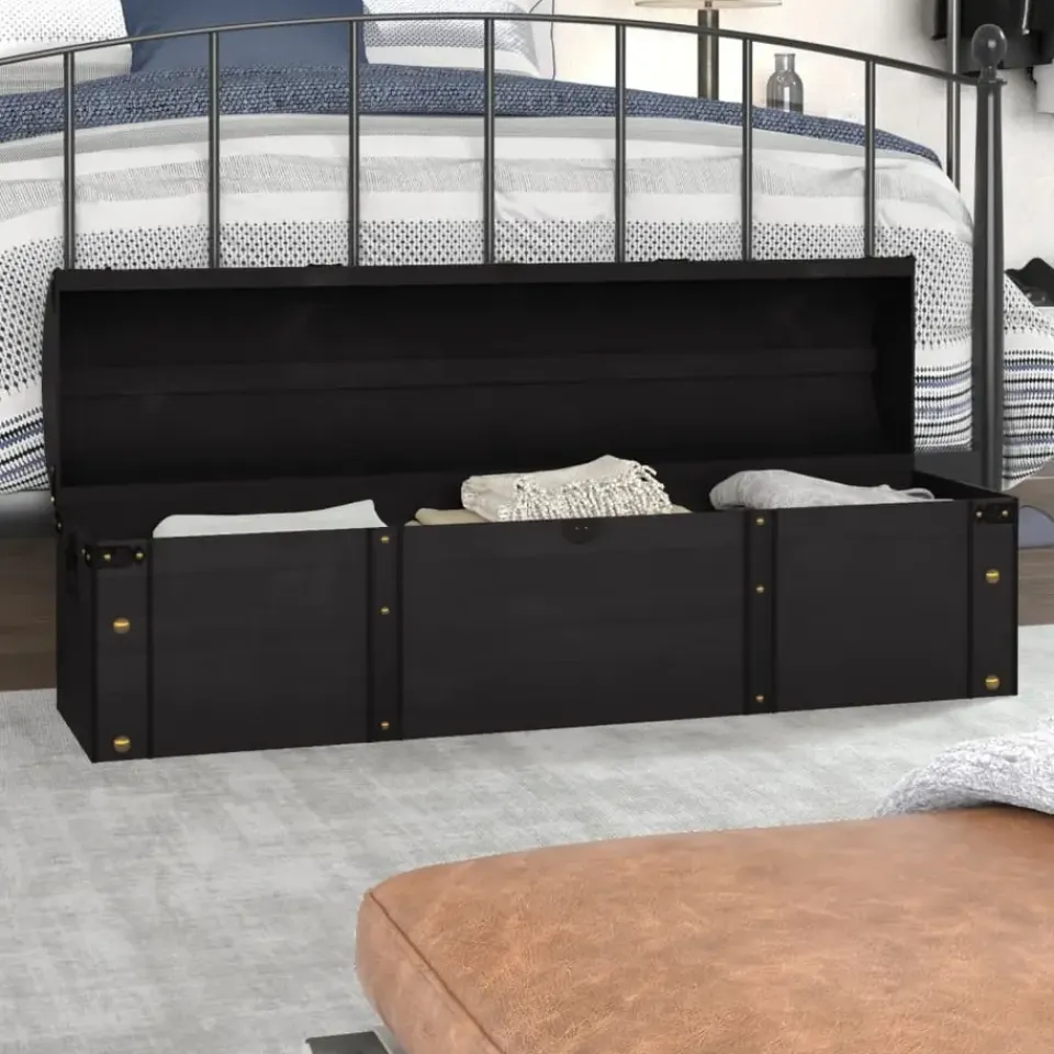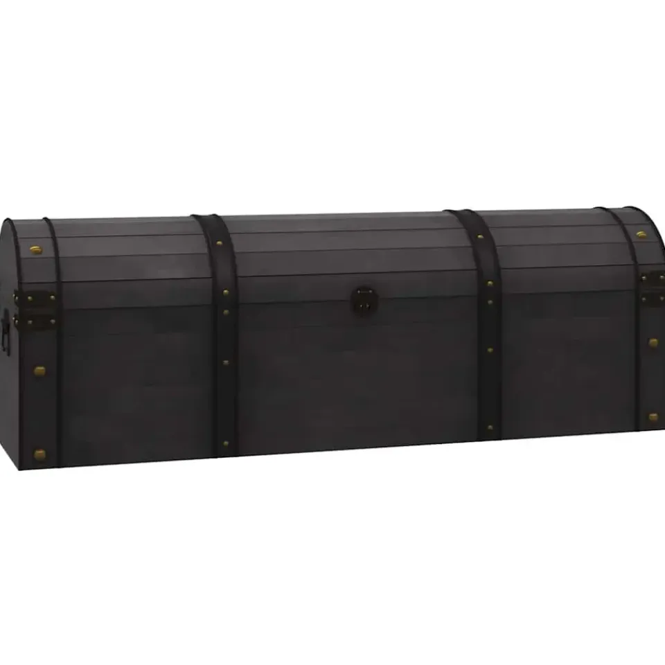 Deze opbergkist is gemaakt van massief hout met een antieke kleurstijl en is gedecoreerd met kunstleren banden en metalen elementen. Hierdoor heeft de kist een vintage charme. De houten kist heeft genoeg opbergruimte voor kleding, boeken, tijdschriften en alles wat je graag binnen handbereik maar niet in het zicht wilt hebben. Dankzij de vintage look grendel en handvatten is de opbergkist gemakkelijk te sluiten en te verplaatsen. Dit product is al gemonteerd, er is geen montage vereist.