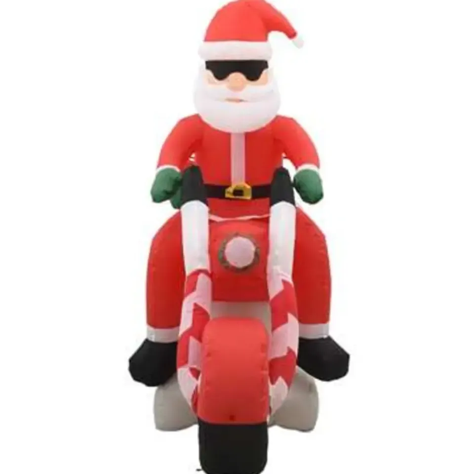 Creëer deze feestdagen de ultieme feestelijke kerstvertoning in je tuin met onze 150 cm lange opblaaskerstman op een motorfiets.