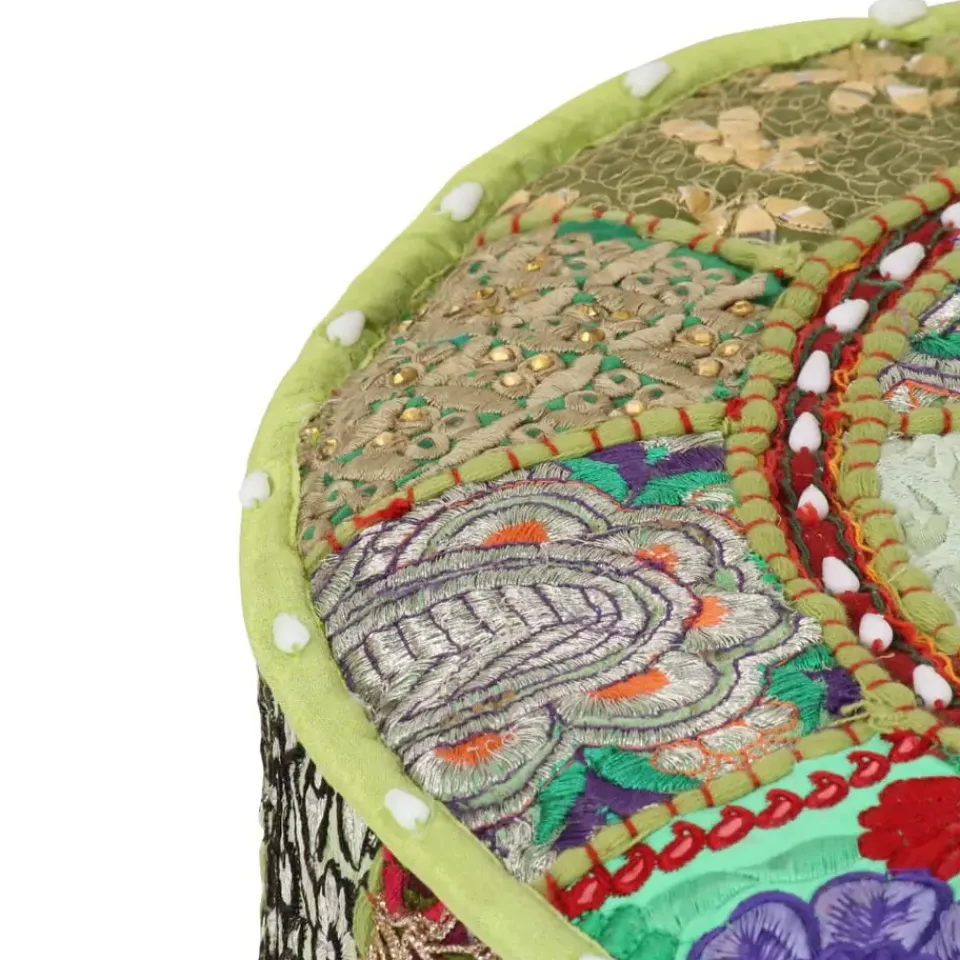 Deze poef is handgemaakt van 100% katoen met vulling, waardoor hij zacht en comfortabel is. Hij heeft prachtige borduursels om je interieur een Indiase stijl te geven. Plaats de poef voor een bank of fauteuil en hij geeft je kamer een knus vleugje!