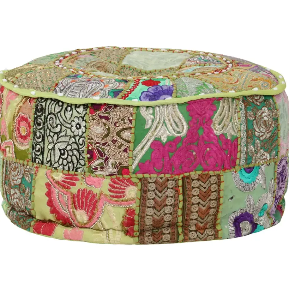 Geniet van een ontspannend moment op onze handgemaakte poef in vintage stijl! Hij wordt met zijn prachtige patchwork ontwerp een echte blikvanger in elk interieur.