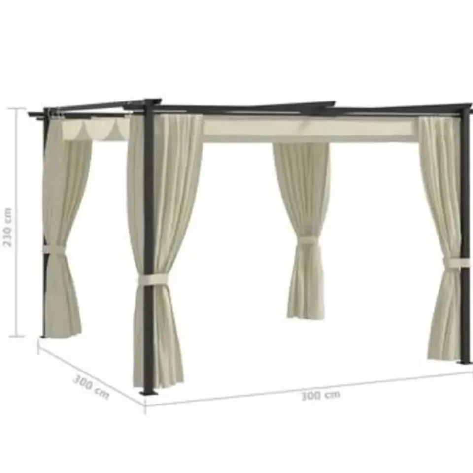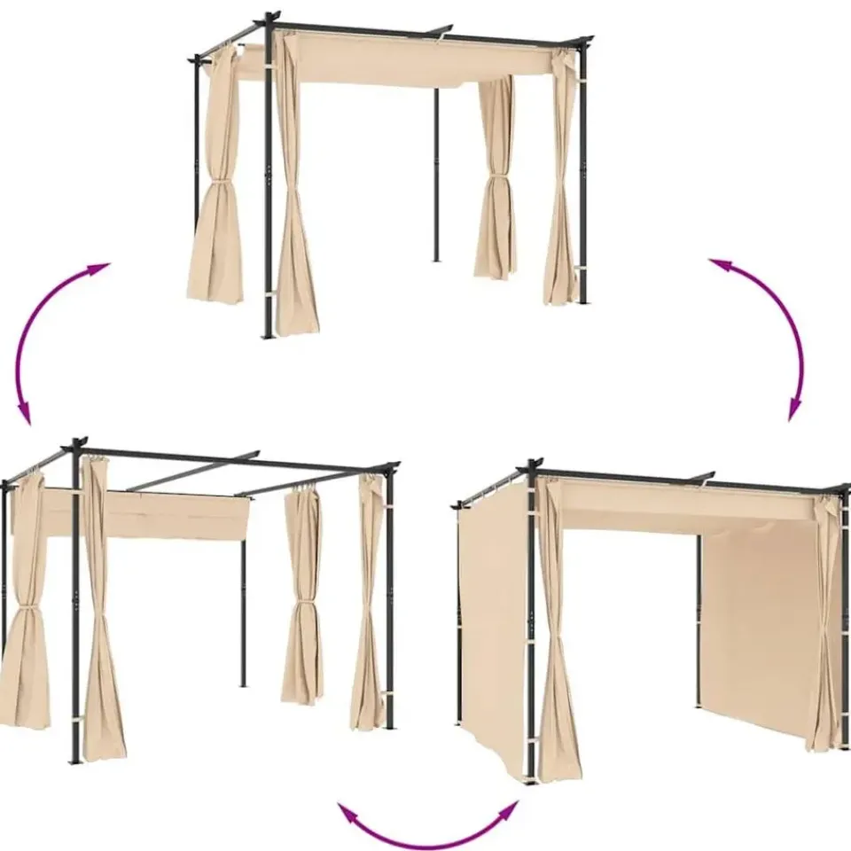 - Water- en uv-bestendig: Het polyester dak met PA-coating maakt hem water- en uv-bestendig. Bovendien wordt hij geleverd met zijgordijnen voor extra privacy en schaduw.