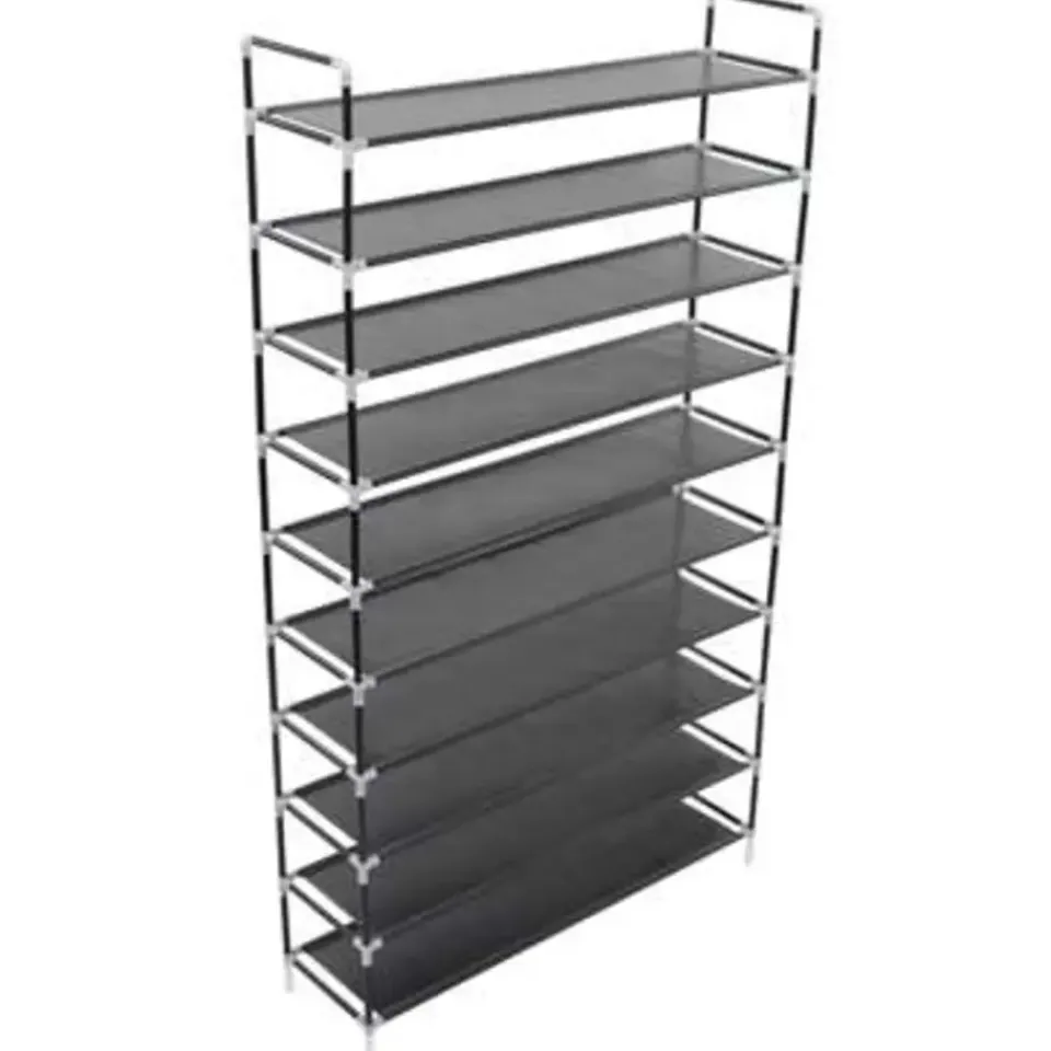 Het heeft een buisvormig, metalen frame dat lichtgewicht en toch stevig is, waardoor het schoenenrek gemakkelijk te verplaatsen en vrij duurzaam is. Het rek heeft 10 royale schappen die gemaakt zijn van nonwoven stof en voldoende ruimte bieden om je schoenen netjes op te kunnen bergen.