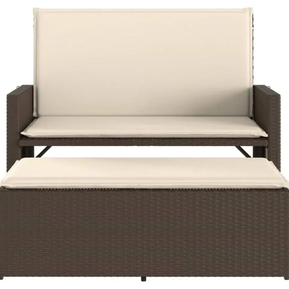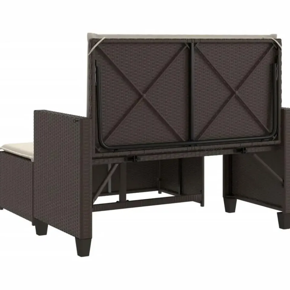 - Veelzijdige functionaliteit: dit tuinmeubilair kan als 2-zitsbank of als slaapbank worden gebruikt. Je kunt er gemakkelijk een bed van maken door de rugleuning achterover te klappen en de voetenbank onder de bank vandaan te trekken. De steunpanelen achter de rugleuningen maken het bed stabieler.