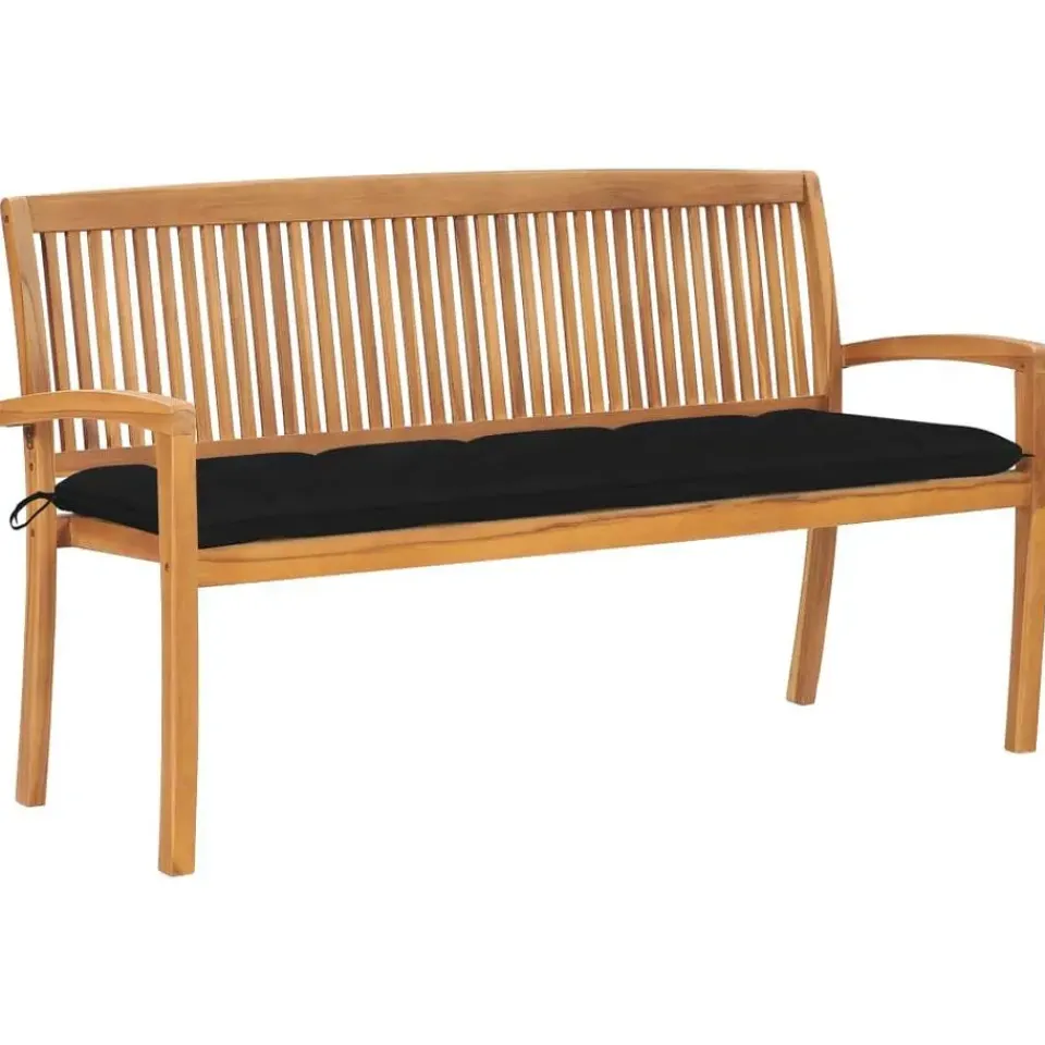 Dit bankje is stapelbaar om ruimte te besparen wanneer het niet wordt gebruikt. Het meegeleverde kussen is meer dan een praktische toevoeging; het heeft ook een decoratieve functie.