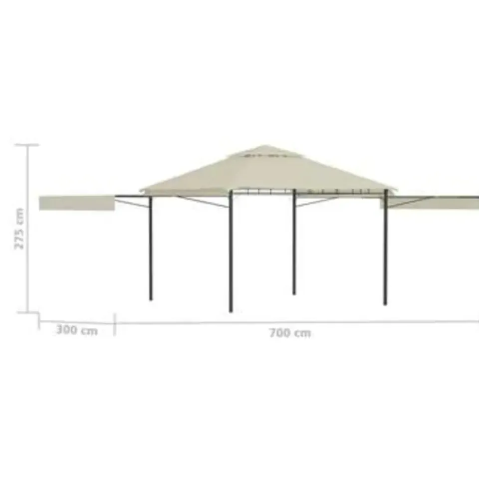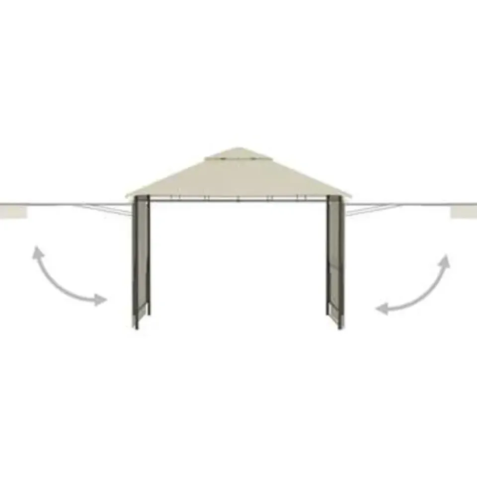 Deze tuintent heeft een stalen frame met een stevige poedercoating om roest, corrosie en afbladderen te voorkomen. Hij is dus zeer duurzaam en elegant. De dubbele, uitschuifbare daken bieden extra ruimte. Je kan de daken laten zaken en gordijnen bevestigen om insecten, direct zonlicht en regen buiten te houden. Het prieel is ook perfect voor gezellig samenzijn, feesten, diners of om te ontspannen. Deze tent is eenvoudig in elkaar te zetten.