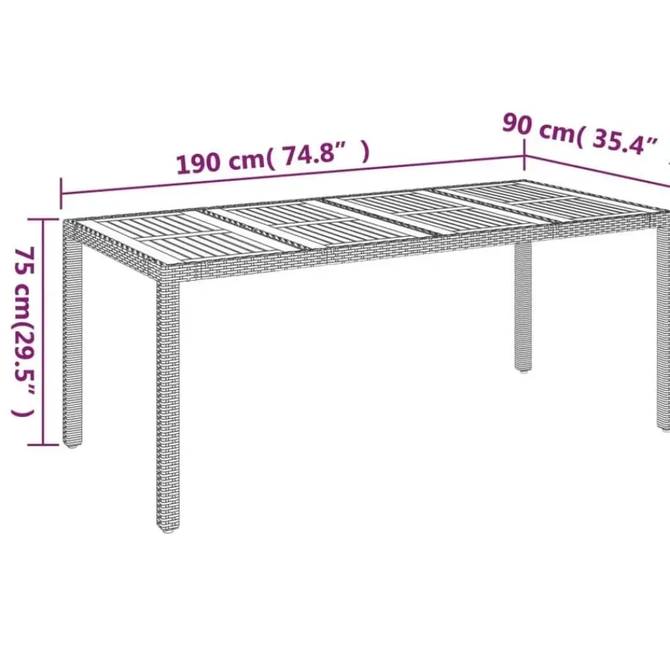 - Afmetingen: 190 x 90 x 75 cm (B x D x H)