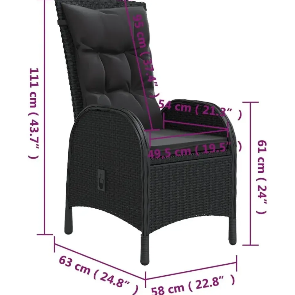 - Comfortabele stoelen: de verstelbare tuinstoel is ontworpen met een gebogen rugleuning en armleuning. De tuinstoel heeft een ergonomische vorm wat voor maximaal comfort zorgt. Kussens zijn inbegrepen voor extra ondersteuning en de hoes met rits is afneembaar voor eenvoudige reiniging.