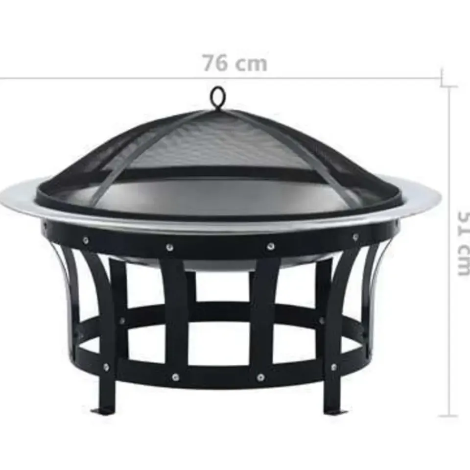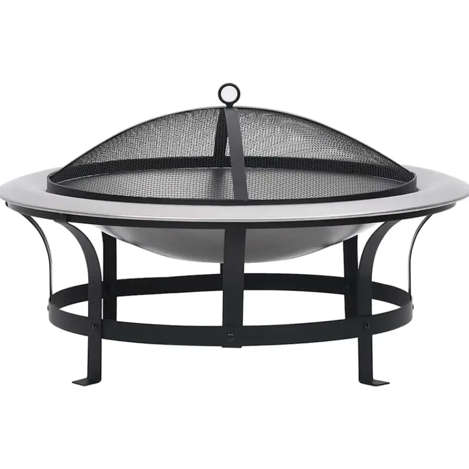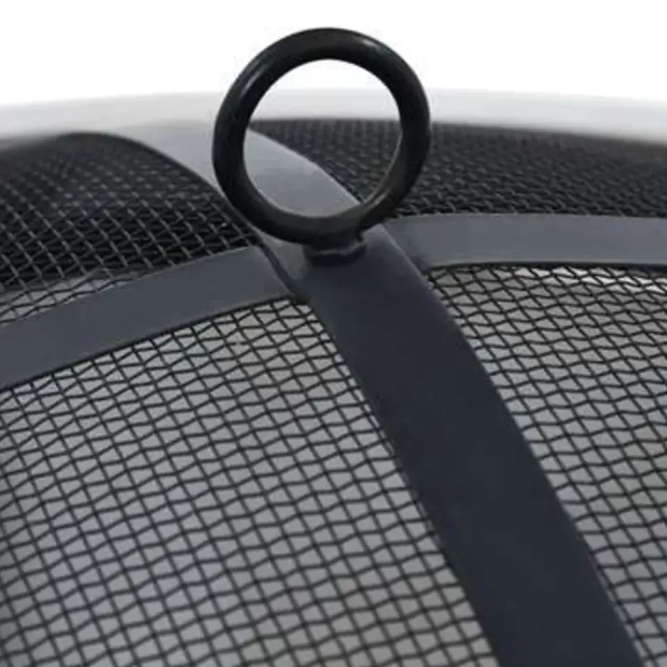 De vuurplaats is gemaakt van staal met hittebestendige afwerking en roestvrij staal. Deze vuurschaal is bestand tegen roest, is lichtgewicht en weerbestendig voor langdurig buitengebruik. Het mesh scherm voorkomt dat vonken, sintels en gruis uit de schaal vliegen, terwijl je met een poker met houten handgreep het mesh scherm veilig kunt optillen en hout of houtskool kunt verplaatsen.