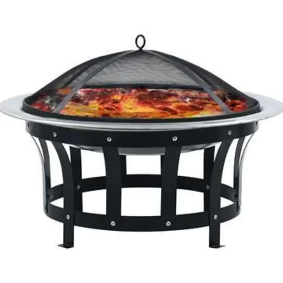 - Levering bevat een vuurplaats, een poker, een ijzeren grill en een vuurschermdeksel