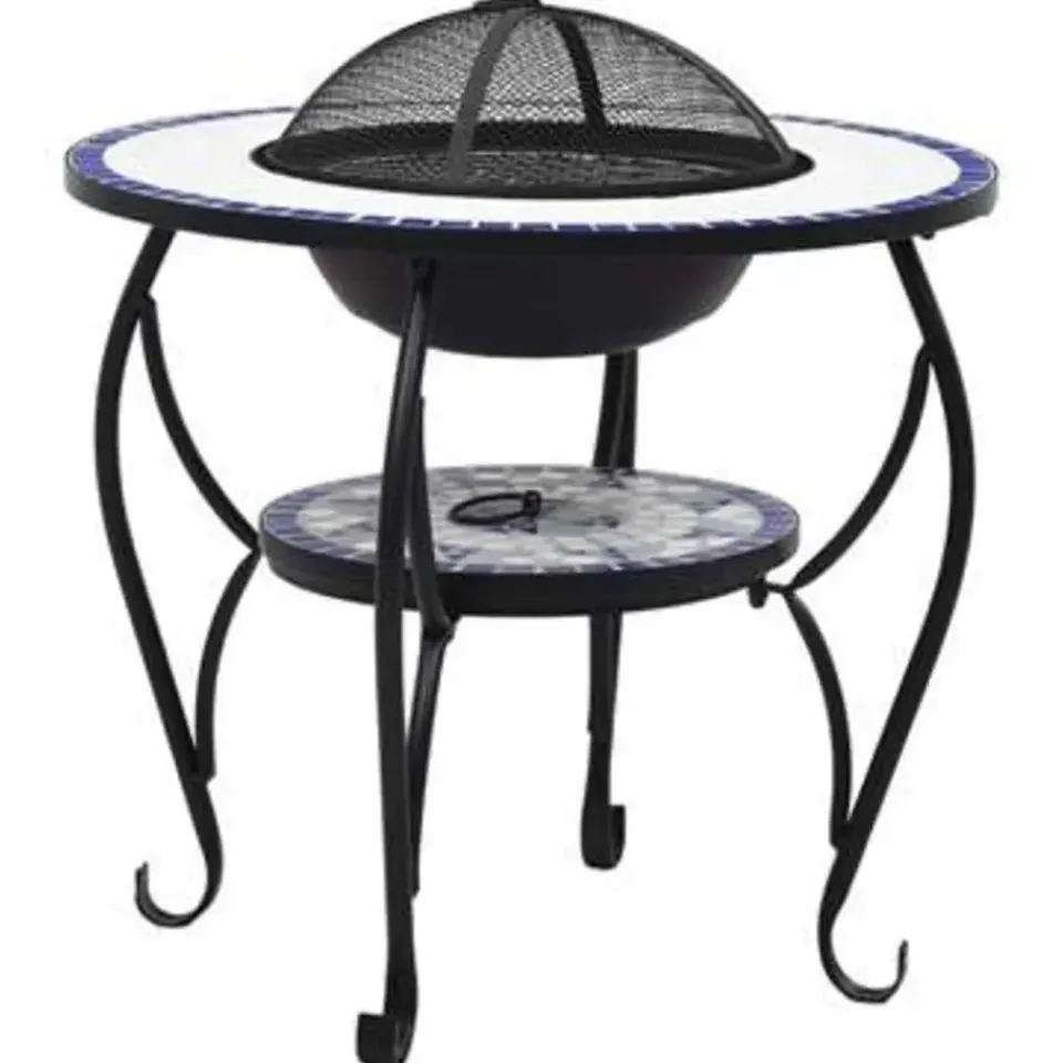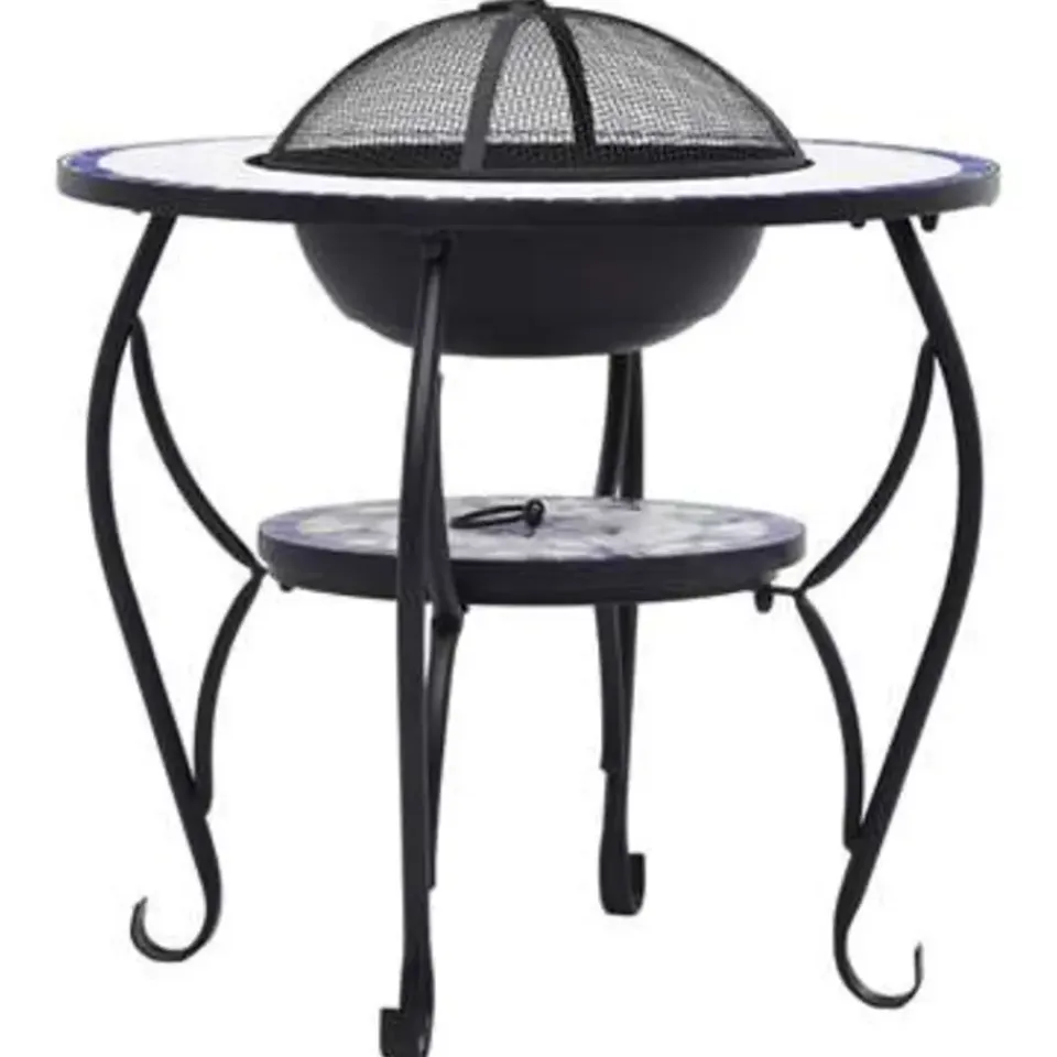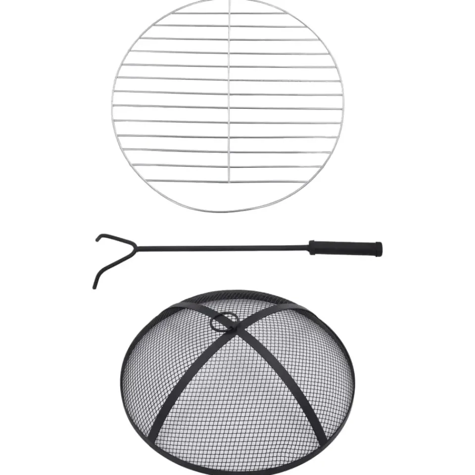 De vuurschaal is gemaakt van hoogwaardig staal en is uitstekend in het absorberen en uitstralen van warmte. Hij kan worden gebruikt met droog hout, houtblokken of houtskool. De vuurplaats wordt ondersteund door een driepotige standaard. Dankzij het inbegrepen veiligheidsgaas kijk je veilig naar het brandende vuur terwijl wordt voorkomen dat vonken en puin uit de schaal schieten. De poker kan worden gebruikt om het gaasdeksel te verwijderen en om de houtblokken of kolen te herschikken. Bovendien kan de vuurschaal ook als barbecue worden gebruikt. Het ronde, keramische oppervlak is een perfecte plek voor drankjes en braadbenodigdheden. Let op, dit product is niet geschikt om in koud weer buiten te staan.