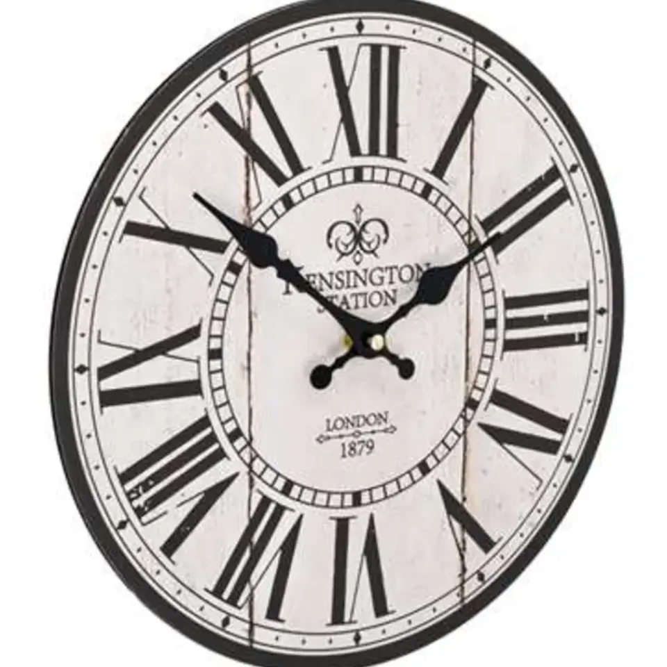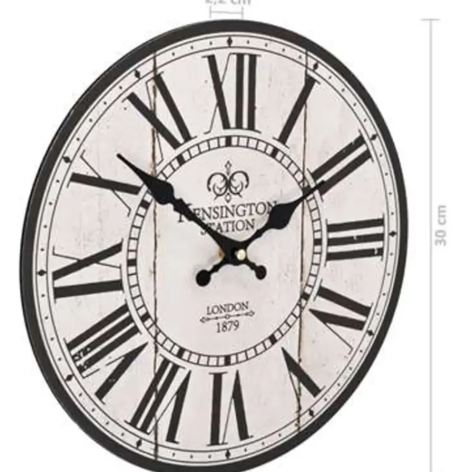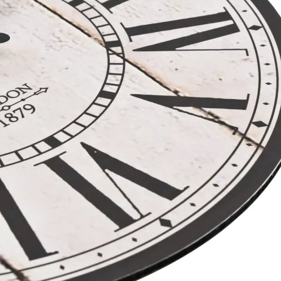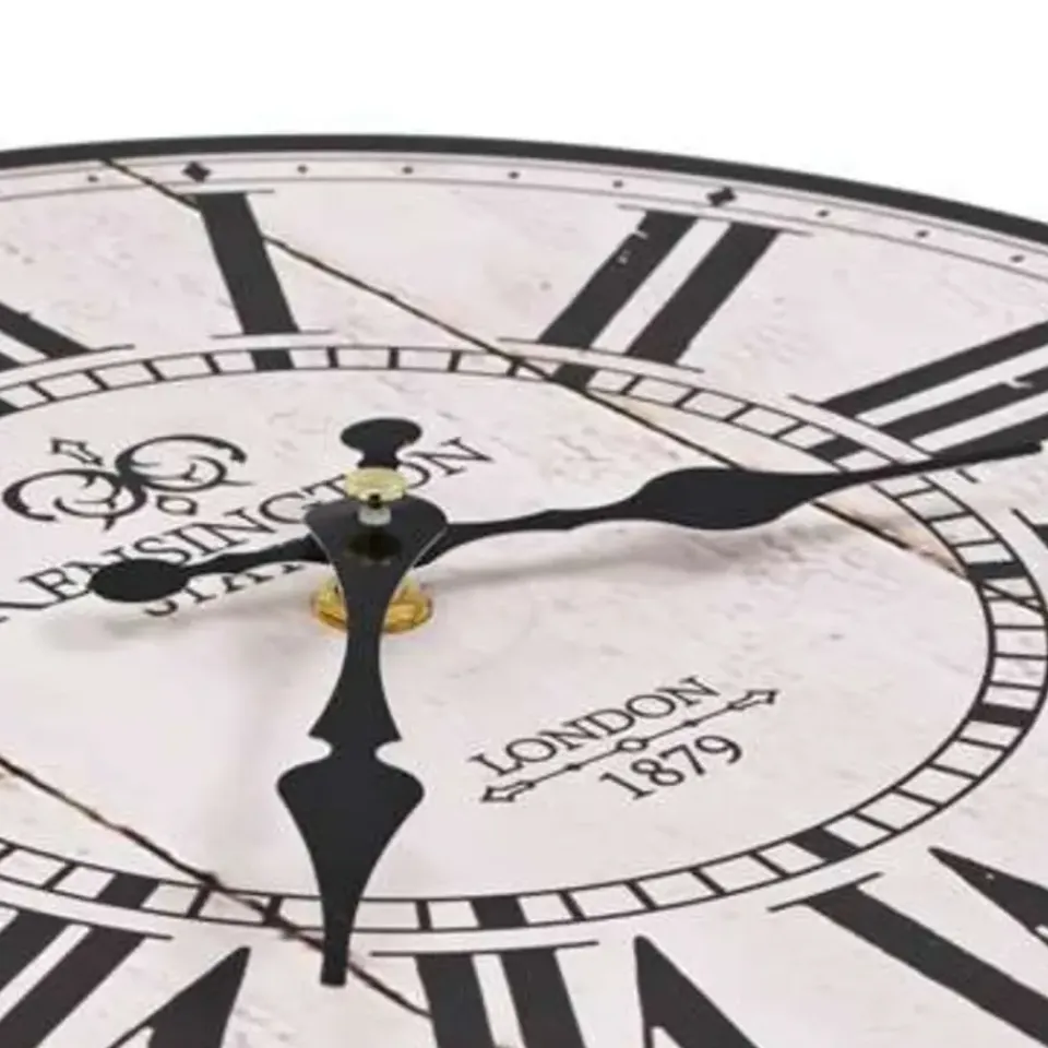 De klok heeft een stevig MDF frame en is zeer duurzaam. Dankzij de grote wijzerplaat en de duidelijke cijfers is de klok ook van veraf goed afleesbaar. Hij kan gemakkelijk aan de muur worden gehangen. De klok geeft een nostalgische uitstraling aan je inrichting.