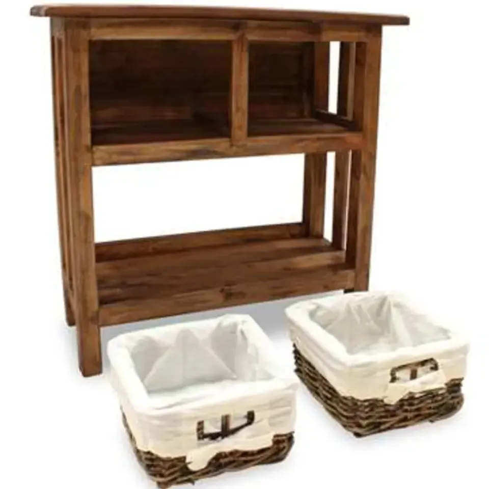 Deze houten wandtafel is een perfecte keuze als je een vleugje rustieke charme aan je interieur wilt toevoegen. De tafel heeft 2 uitneembare rattan manden en 1 schap waardoor er voldoende opbergruimte is. De verwijderbare manden zijn niet alleen praktisch, maar voegen ook een decoratief vleugje toe.
