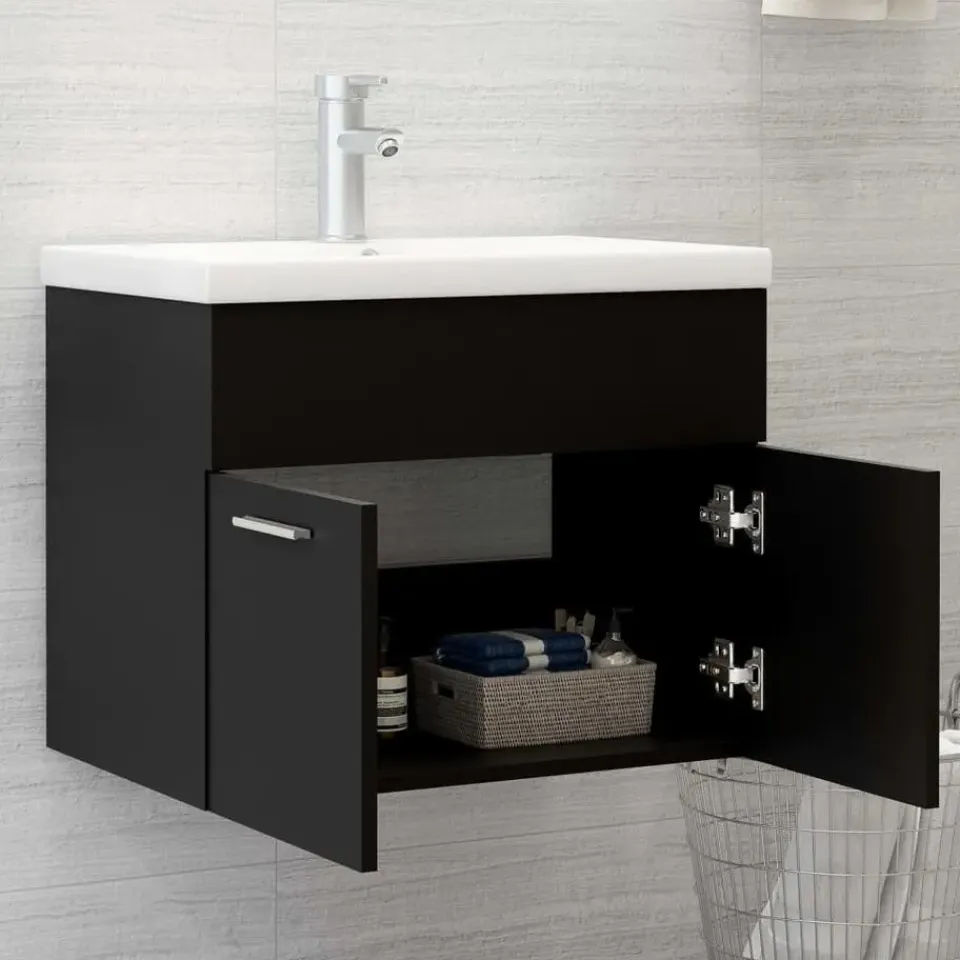 De kast is gemaakt van spaanplaat, waardoor hij stevig en stabiel is. De opbergkast heeft 1 vak en 2 deuren, waardoor er voldoende ruimte is om spullen op te bergen. Hij past perfect onder de gootsteen en maakt het opbergen in de badkamer heel handig. De wastafel is gemaakt van keramiek en dient niet alleen als product voor dagelijks gebruik, maar ook als versiering in je leefruimte. Dankzij zijn trendy en eigentijdse ontwerp past deze wastafel beslist in elk interieur. De overloop zorgt ervoor dat de bak nooit over kan lopen. Het geglazuurde oppervlak geeft een modern en elegant tintje aan deze wastafel. Daarnaast zijn de kast en wastafel eenvoudig schoon te maken met een vochtige doek.