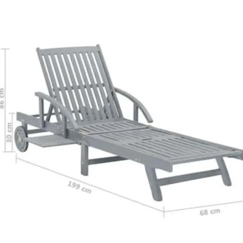 Dit tuinligbed is gemaakt van duurzaam acaciahout met een greywash afwerking waardoor hij zeer weerbestendig is. De brede armleuningen, hoge rugleuning en voorgevormde zitting dragen bij aan de visuele aantrekkingskracht, evenals het zit- of ligcomfort. De rugleuning en de voetensteun zijn verstelbaar zodat je het ligbed in de gewenste positie kunt plaatsen. Het ligbed is uitgerust met 2 wielen en kan gemakkelijk rondom het huis worden verplaatst. Het is gemakkelijk schoon te maken en te onderhouden.