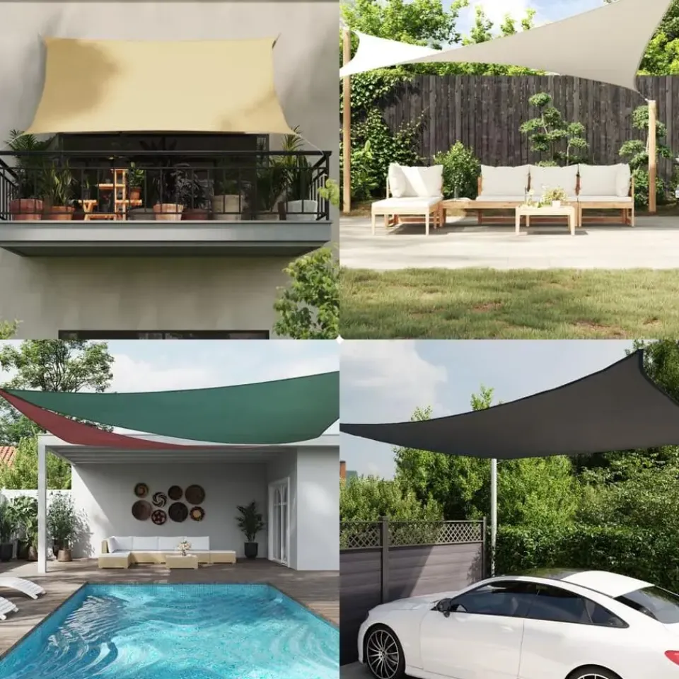Goed om te weten: installeer 2 hoeken van de zeilen hoger dan de andere, zodat water ervanaf kan lopen.