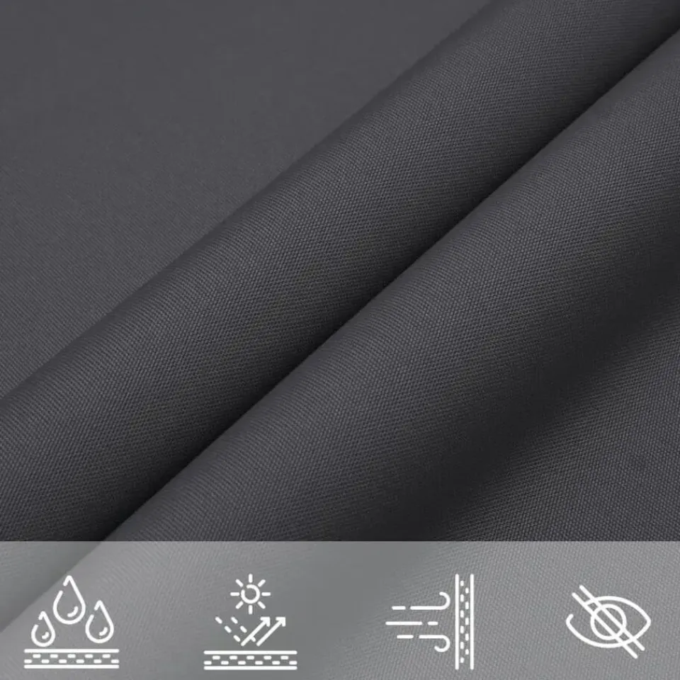 Het zonnescherm is gemaakt van PU-gecoat oxford stof en zal je beschermen tegen direct zonlicht en regen. Het textiel is speciaal behandeld zodat het schimmel- en uv-bestendig is.