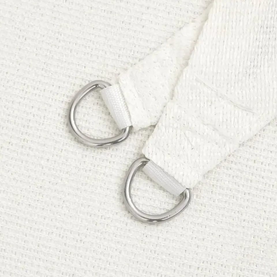 Het zonnescherm is eenvoudig te monteren dankzij de roestvrijstalen bevestigingen in elke hoek en de meegeleverde touwen.