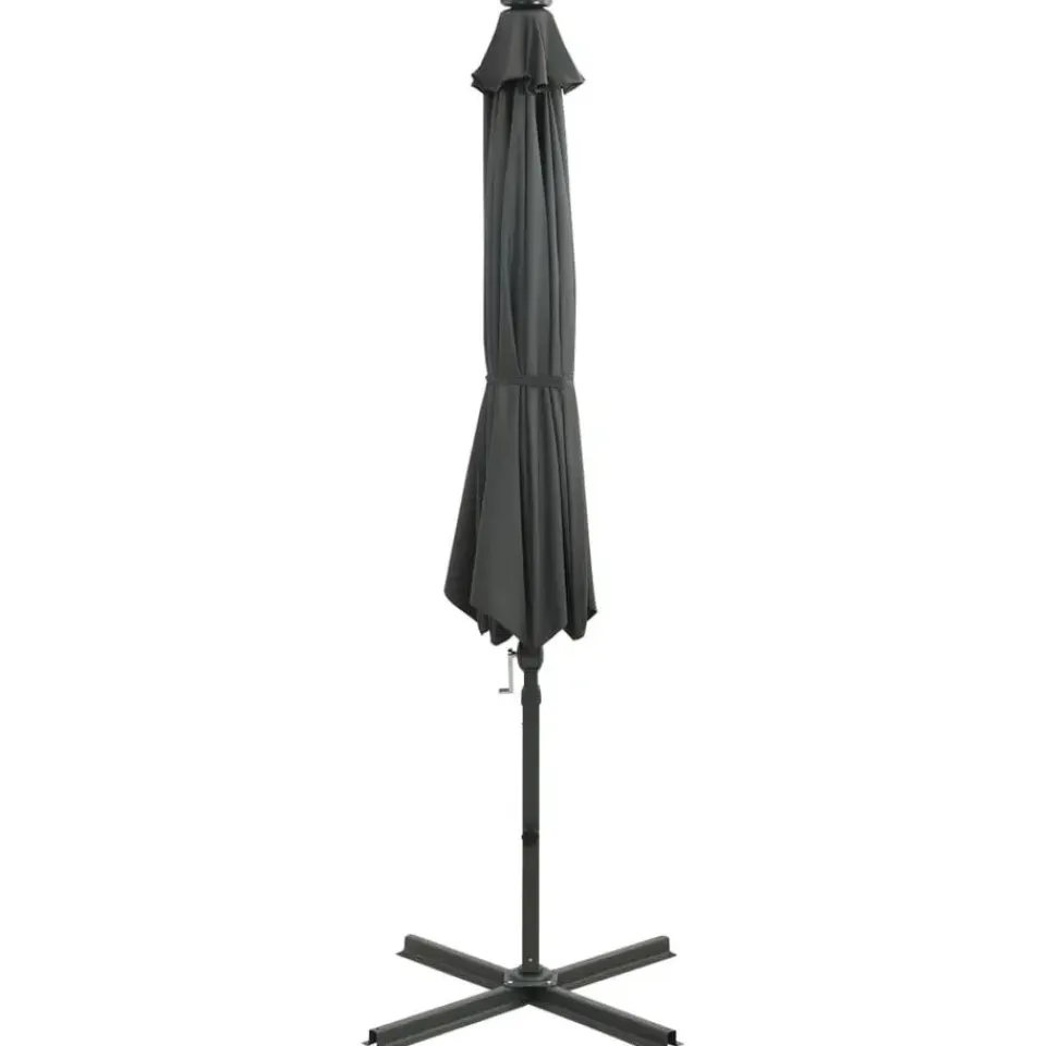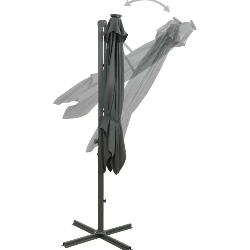 Deze elegante zweefparasol met LED-verlichting is de perfecte keuze om wat schaduw te creëren en jezelf te beschermen tegen de schadelijke uv-straling van de zon. Wanneer de zon ondergaat, verlichten de LED’s je buitenruimte.