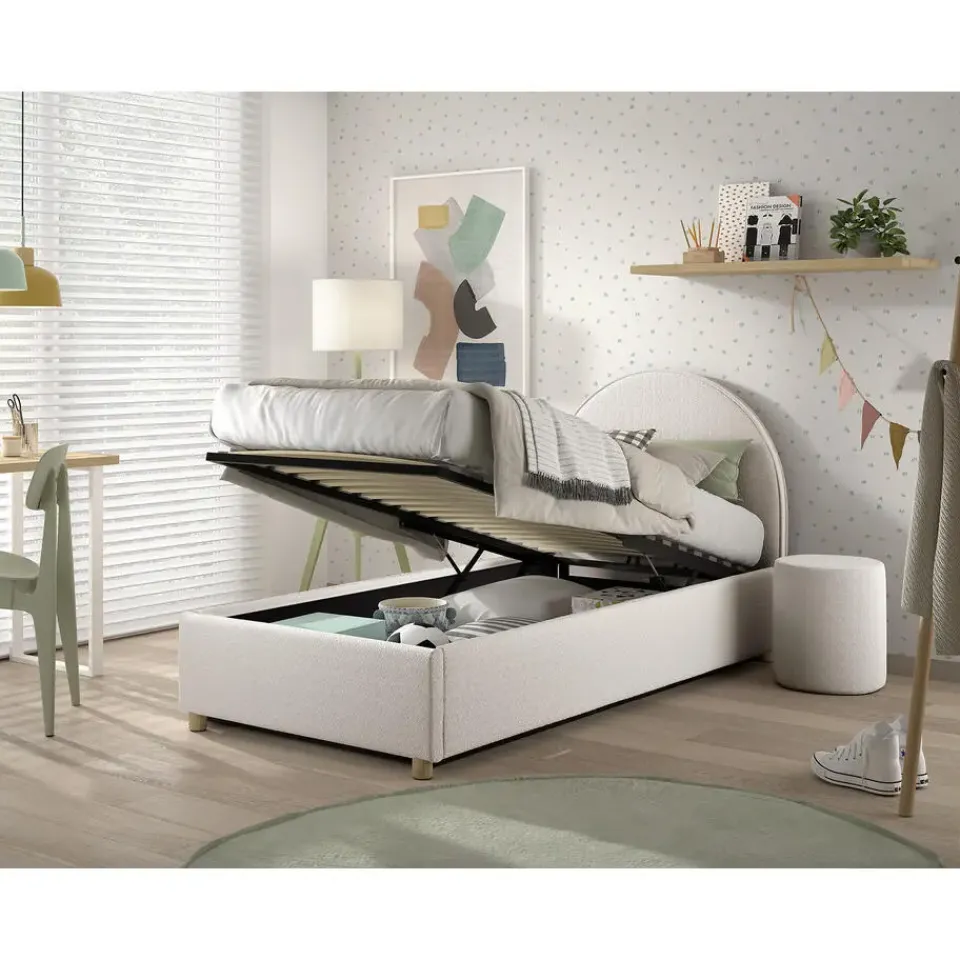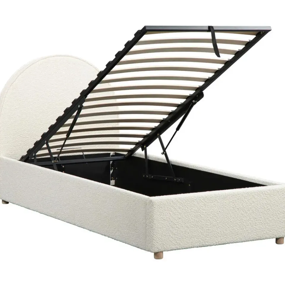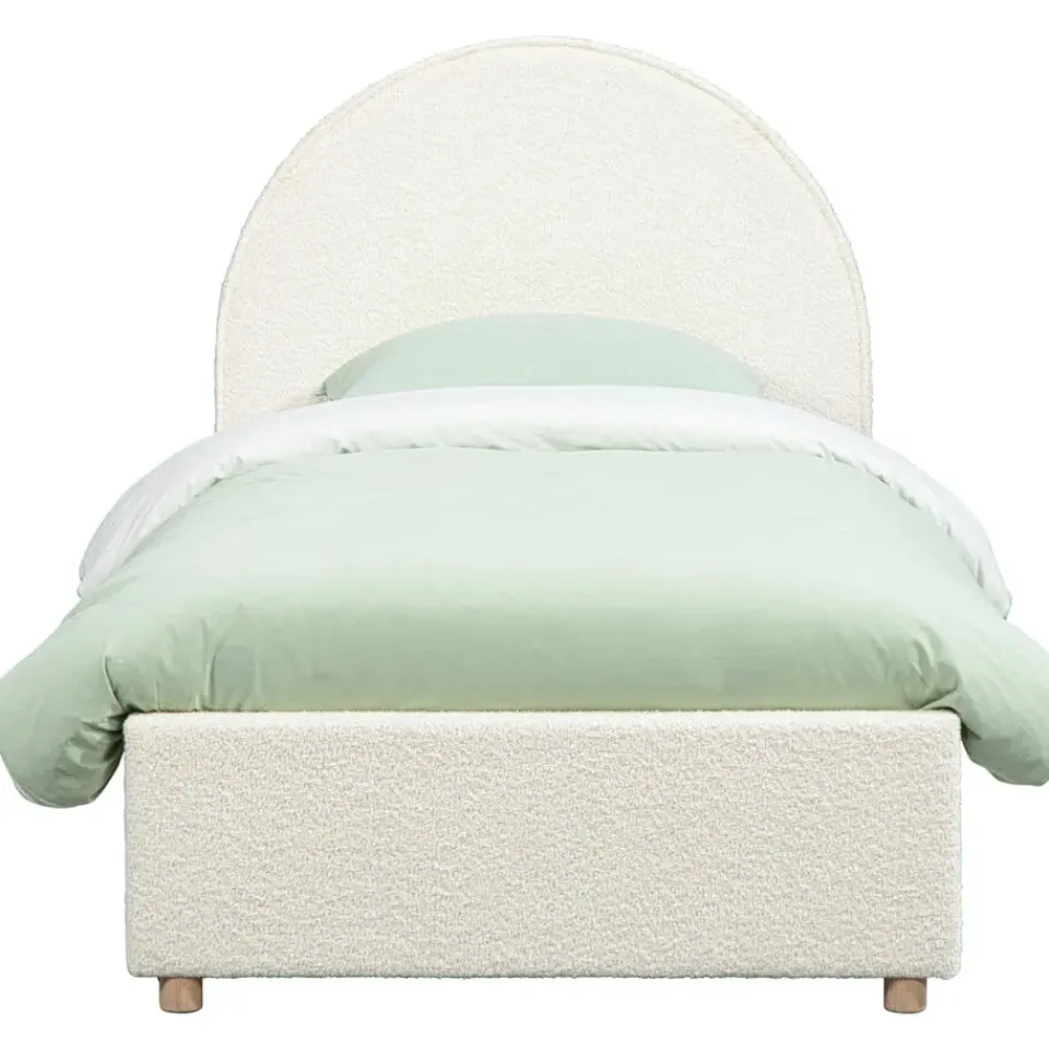 Op zoek naar een bed dat niet alleen lekker slaapt, maar er ook leuk uitziet? Dit Vipack bed is bekleed met een zachte witte bouclé stof en heeft een opvallend maanvormig hoofdbord. Dat maakt het bed extra vrolijk en zorgt meteen voor een speelse sfeer in de slaapkamer.