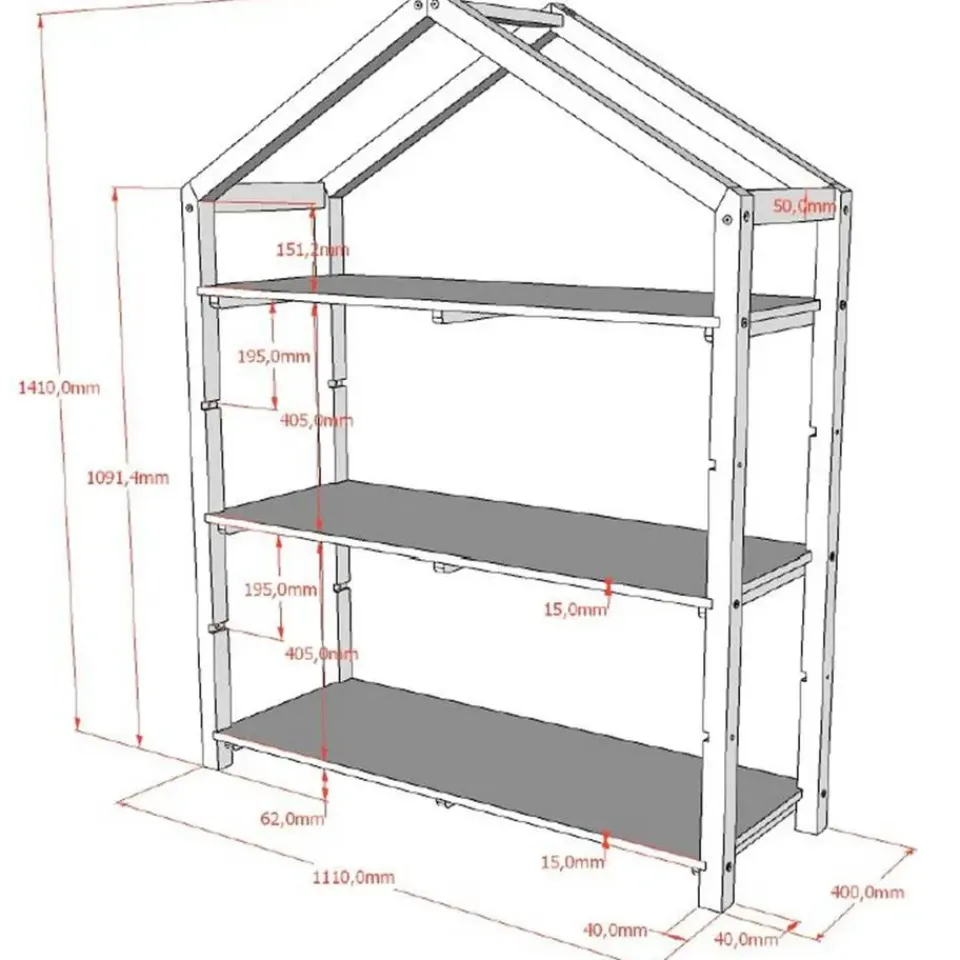 Op zoek naar een boekenrekje voor de kinderkamer met een stijlvol, minimalistisch design? Dan zal dit Dallas-boekenrek je zeker bekoren. Het speelse rek in de vorm van een huisje is gemaakt uit duurzaam massief dennenhout in antraciet. Het compacte ontwerp en twee verstelbare legplanken maken dit rekje ideaal om boekjes, speelgoed en allerlei andere spulletjes uit te stallen. Ontdek ook onze leuke bedhuisjes uit de Dallas-reeks op de website.