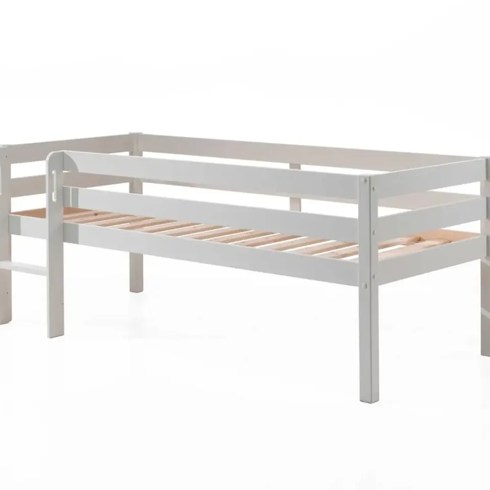 Een halfhoogslaper is de ideale manier op alle ruimte in de kinderkamer optimaal te benutten. Deze halfhoogslaper Pip is gemaakt uit massief dennenhout en is erg stevig. Het bed is voorzien van een laddertje met handgrepen en hoge zijkanten. Hierdoor kan je kind niet uit het bed vallen. Zo slapen ook de ouders op beide oren. De ruimte onder het bed kan gebruikt worden als opbergruimte. Ontdek alle mogelijkheden die de Pim-collectie biedt op onze website.
