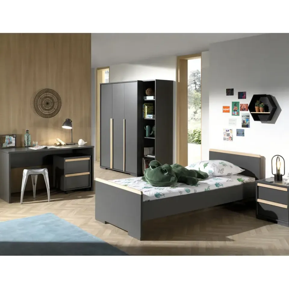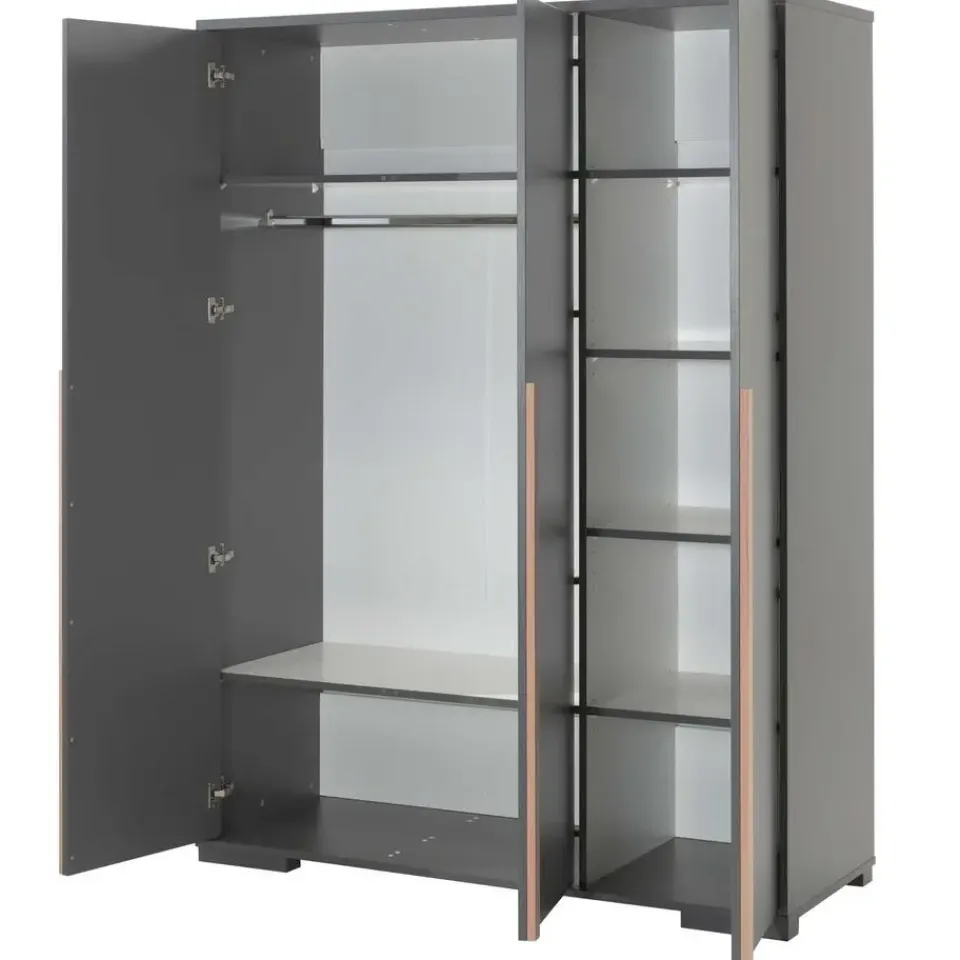 Deze stijlvolle, antracietkleurige kledingkast uit de London-reeks van het merk Vipack is gemaakt van hoogwaardig spaanplaat en is erg stevig. Achter de dubbele deuren van de kast beschik je over een kledingroede en 2 verstelbare legplanken om je kledij op te bergen (binnenafmetingen D 53 x L93 cm). Aan de rechterkant zijn er 5 vakken met verstelbare schappen (binnenafmetingen L 45 x D 50 cm). De lange, verticale handgrepen uit massief beukenhout maken het makkelijk om de kast te openen en sluiten en zorgen voor een warme toets.